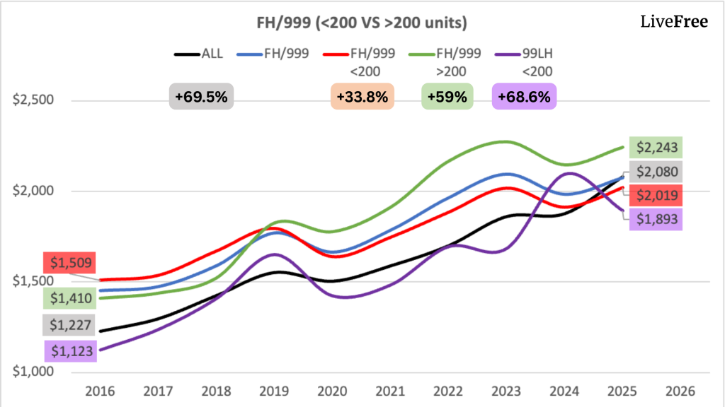 Second, we’ll compare both data against 2 control groups. All FH/999 Project price trends, as well as the overall market.