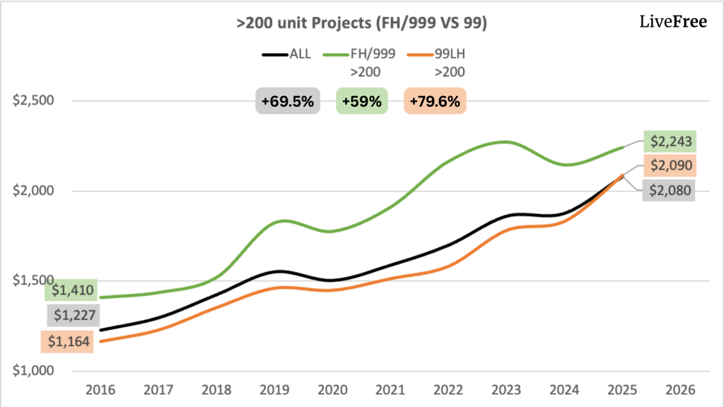 Trend 4: Large 99-Year Leasehold Condos Outperform all categories (ORANGE)