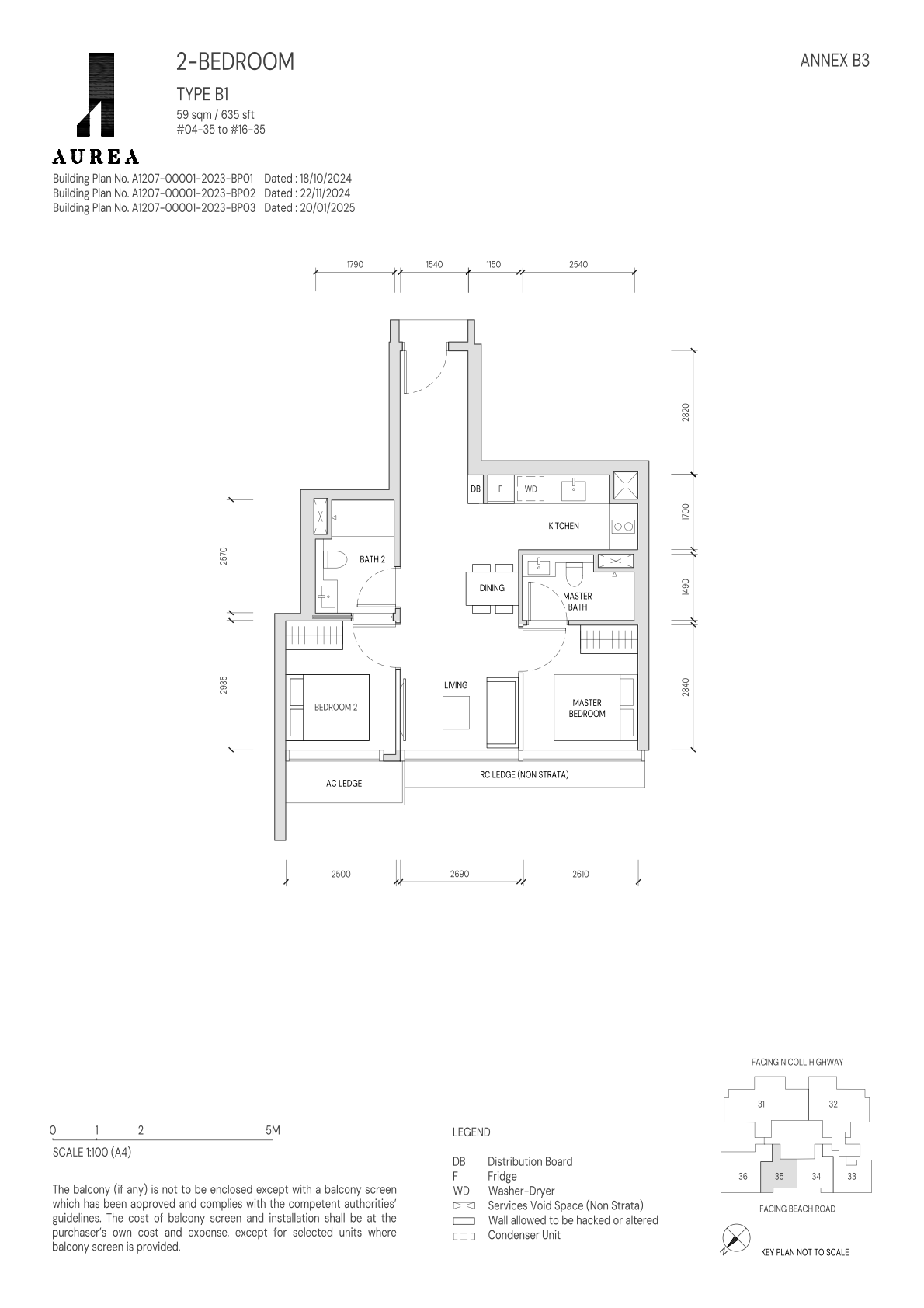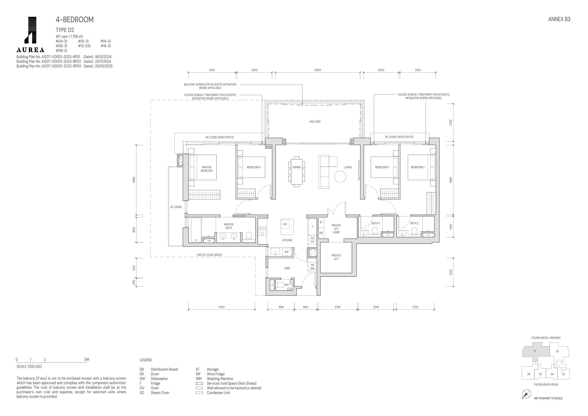 There are 10 Different unit types for Aurea. 2 Bedrooms (B1 to B3, 635sqft to 710 sqft), 3 Bedrooms (C1 1,001sqft), 4 Bedrooms (D1 & D2, 1,442sqft & 1,798 sqft), 5 Bedrooms (E1 & E2, 2863sqft & 3251 sqft), and 2 Penthouses