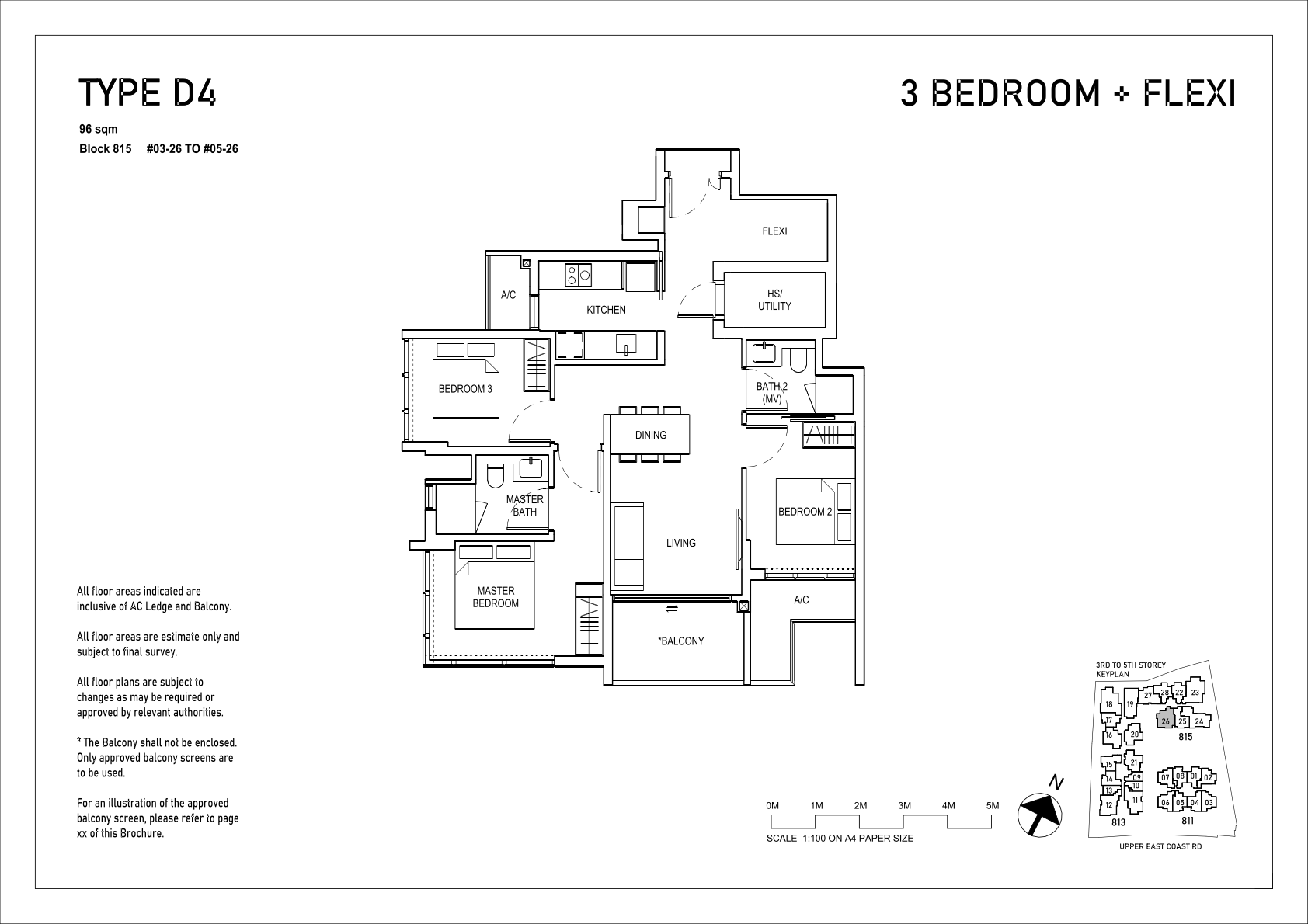 | 3 Bedroom + Flexi | 20 | 980 - 1033 | 17.70% | D1 - D4 | - |