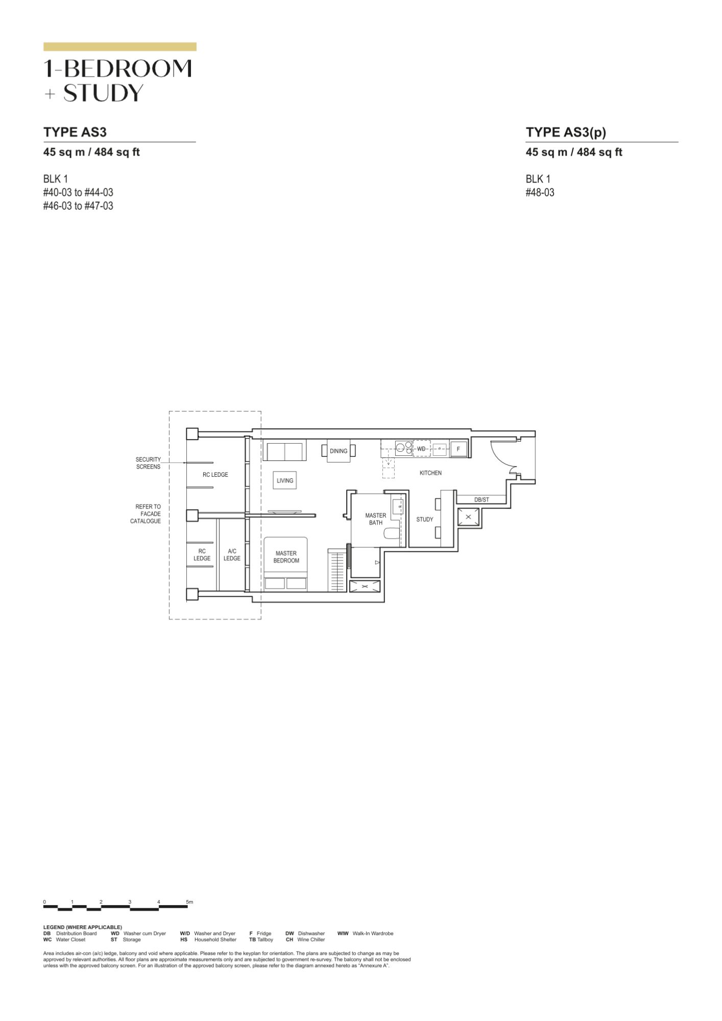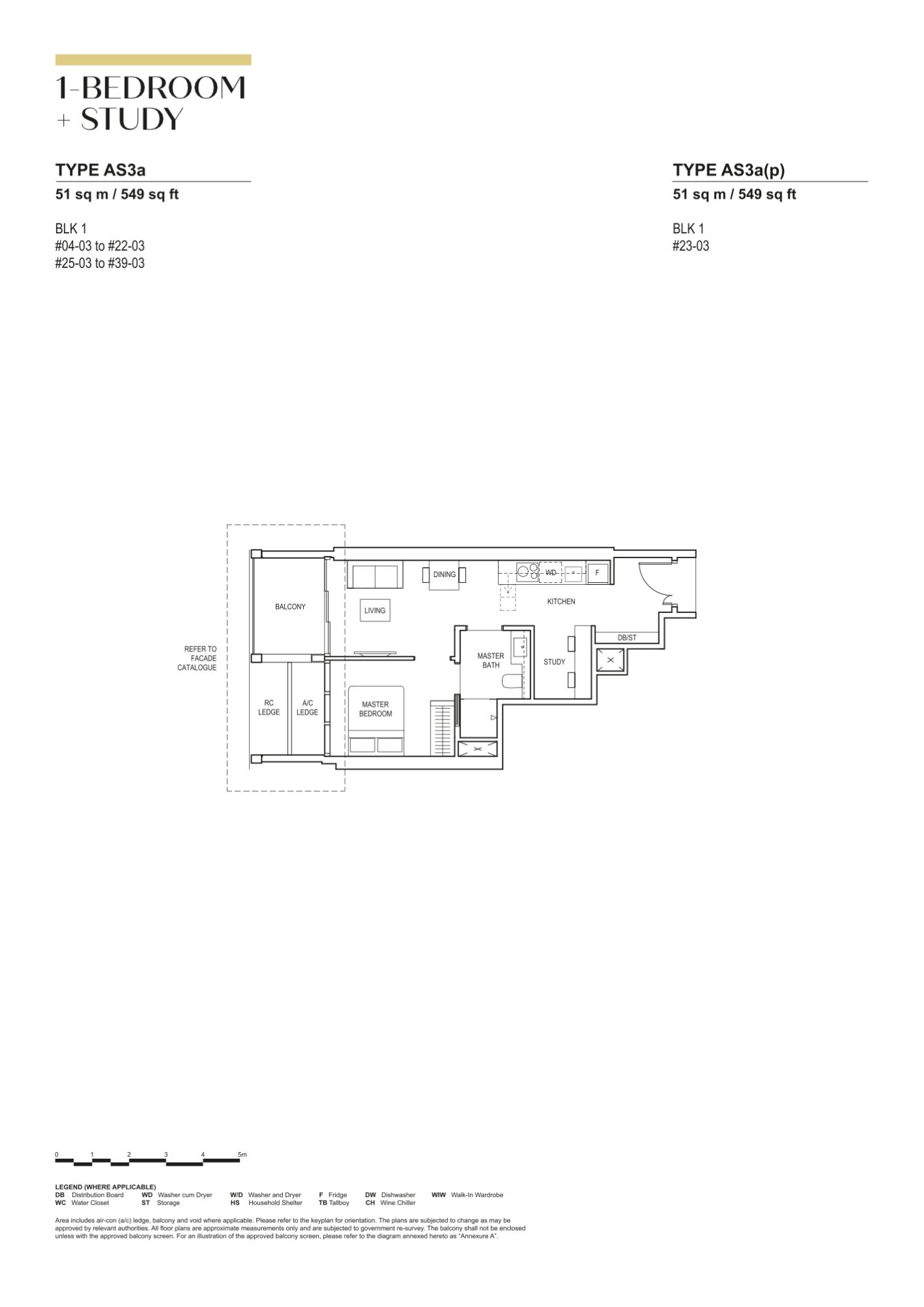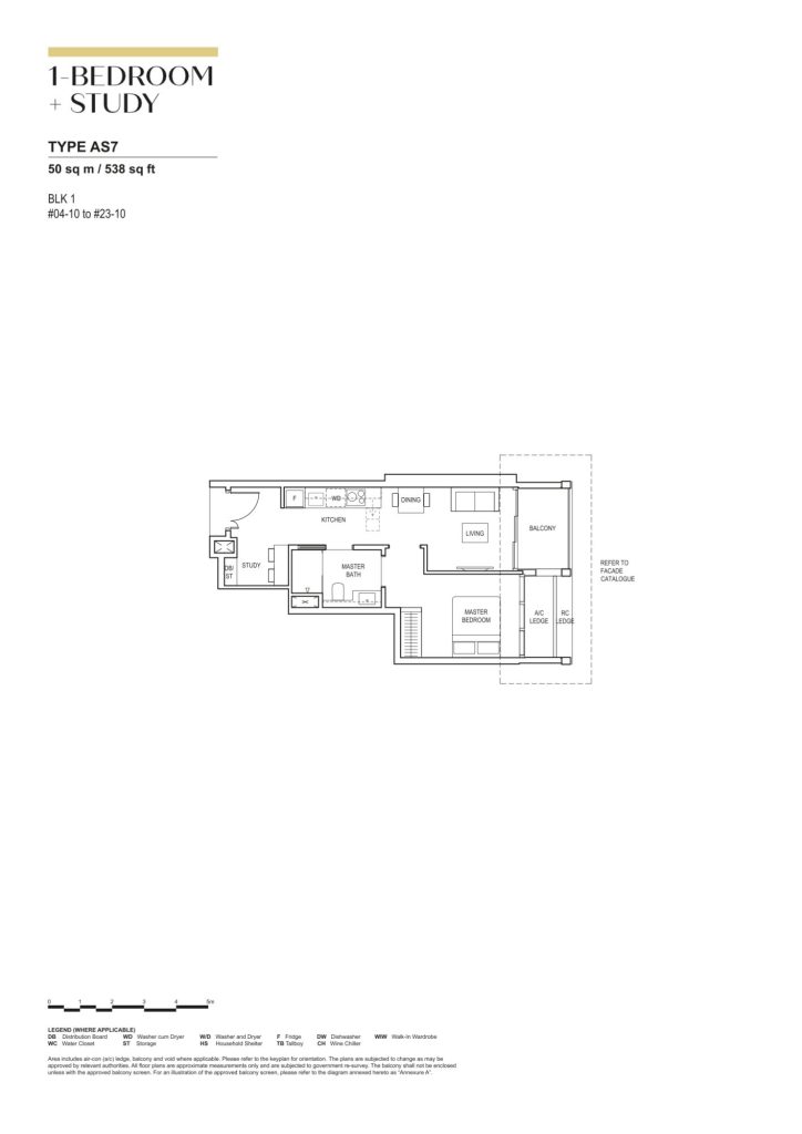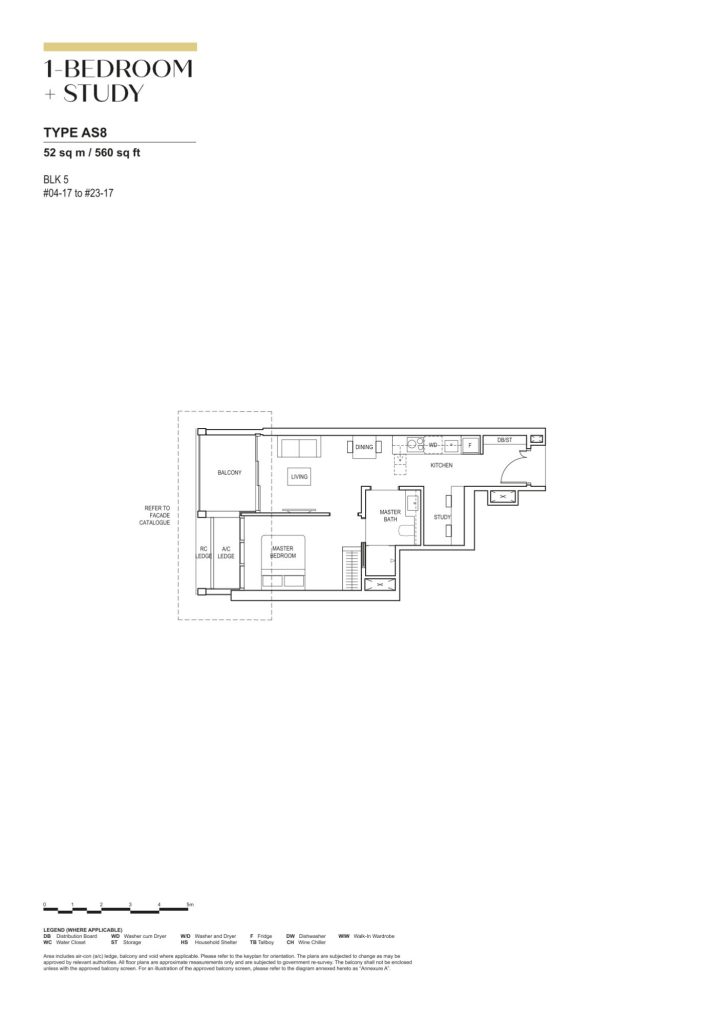 | 1 Bedroom + Study | 229 | 474 - 560 | 32.90% | AS1 - AS8 | $395 |