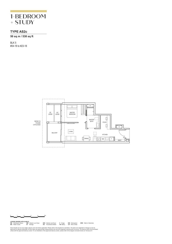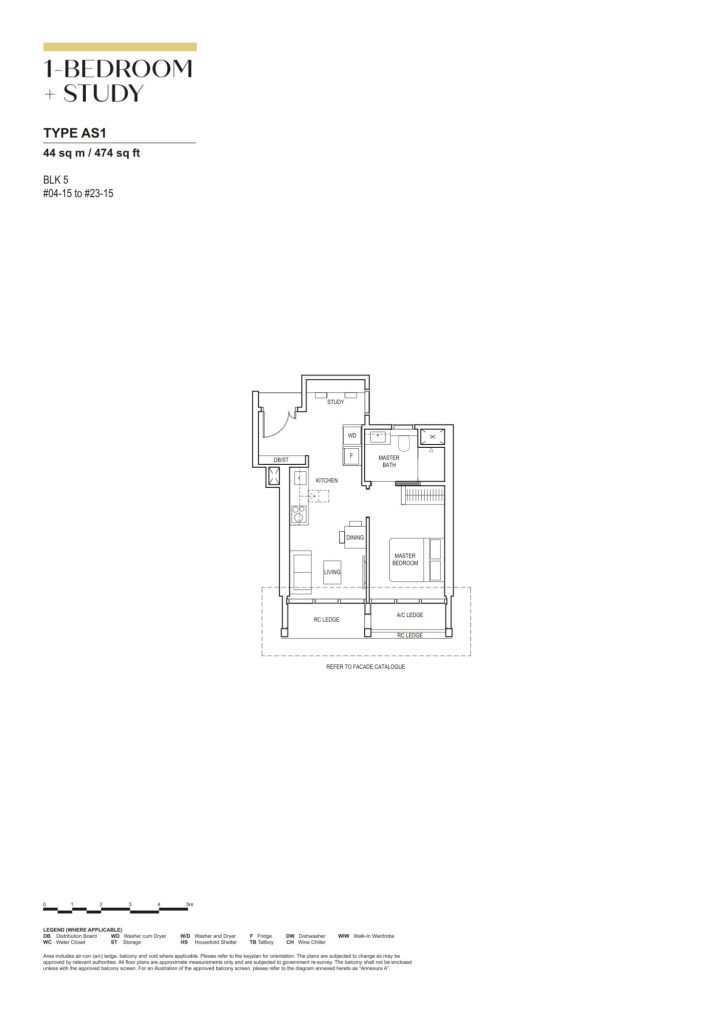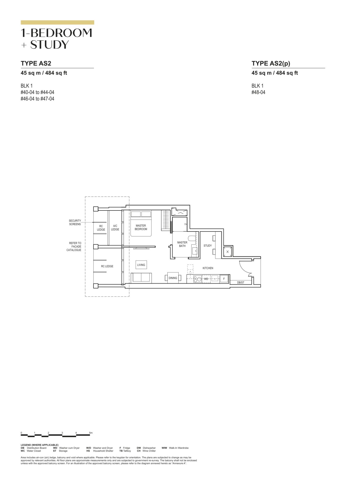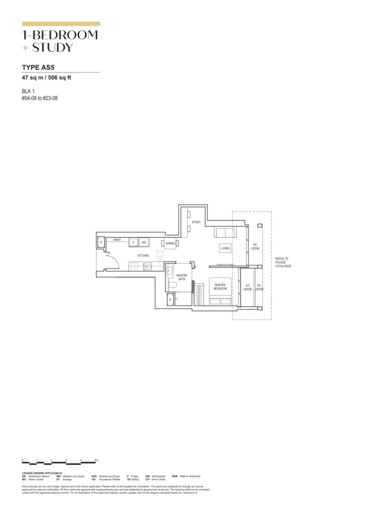 | 1 Bedroom + Study | 229 | 474 - 560 | 32.90% | AS1 - AS8 | $395 |