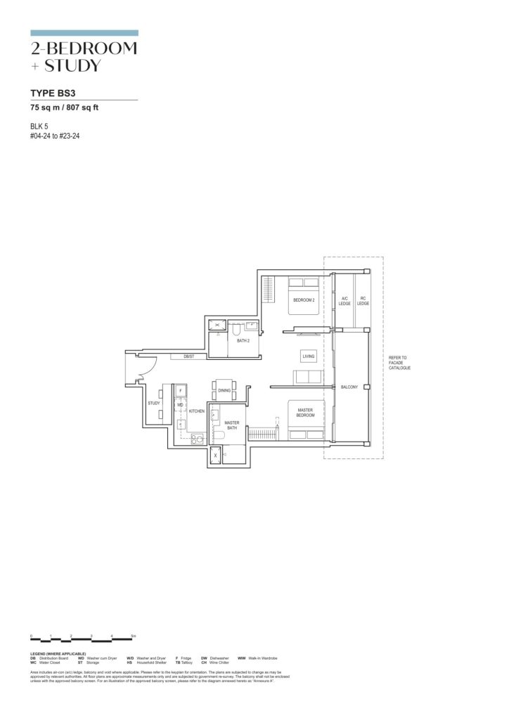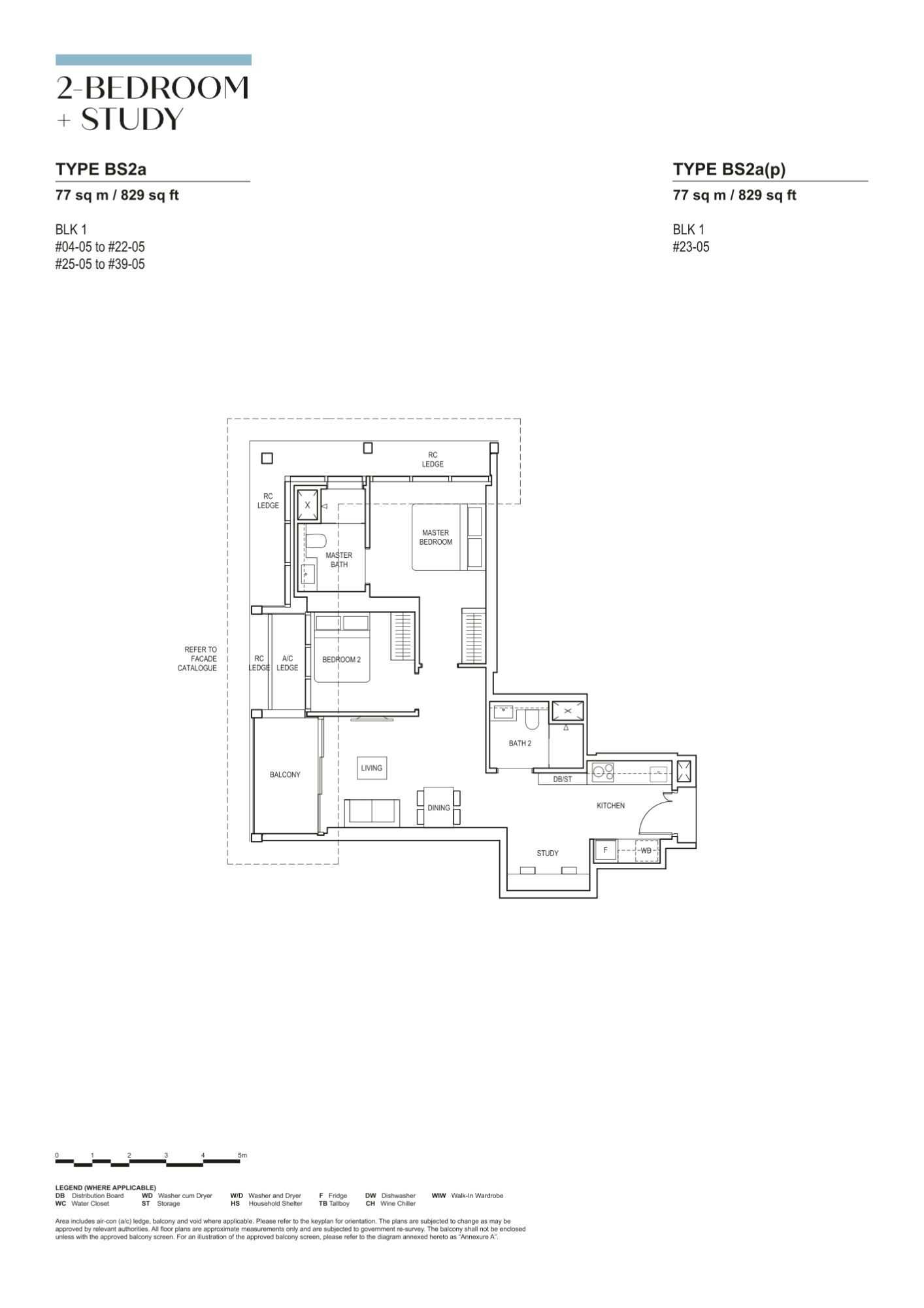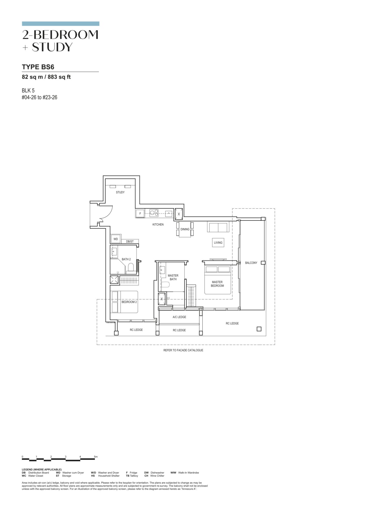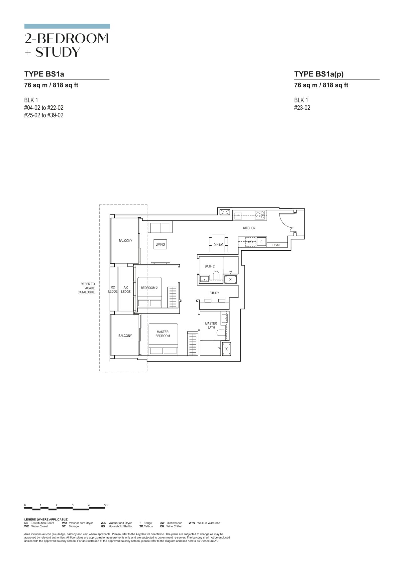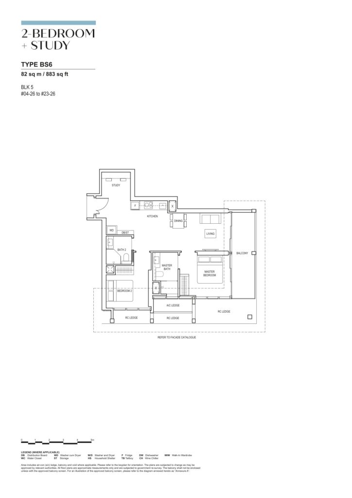 | 2 Bedroom + Study | 183 | 732 - 883 | 26.29% | BS1 - BS6 | $474 |