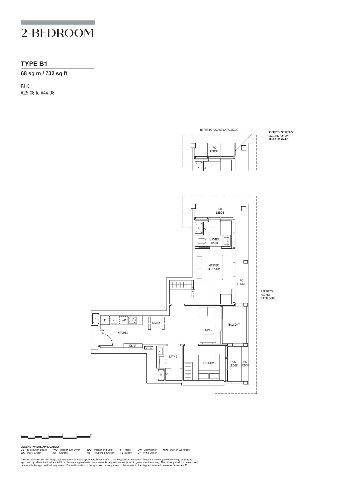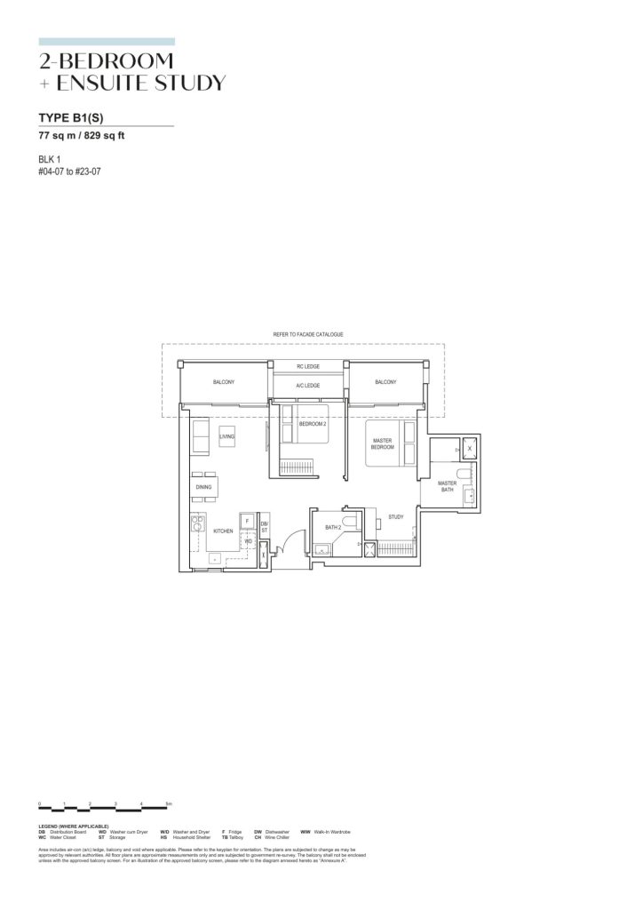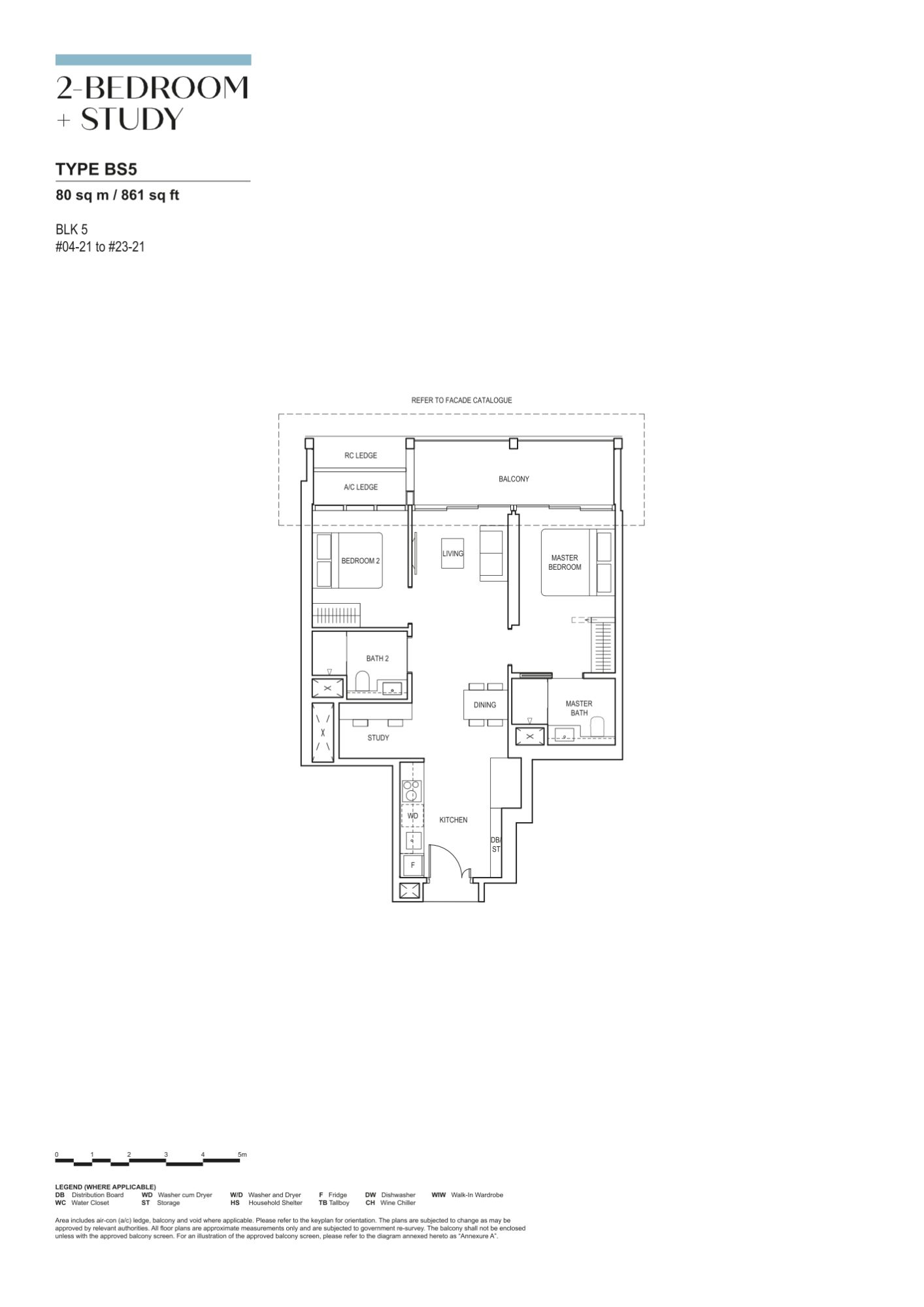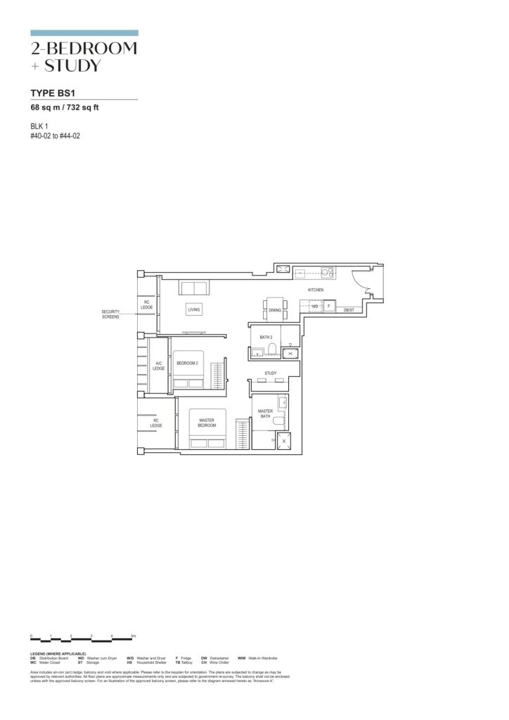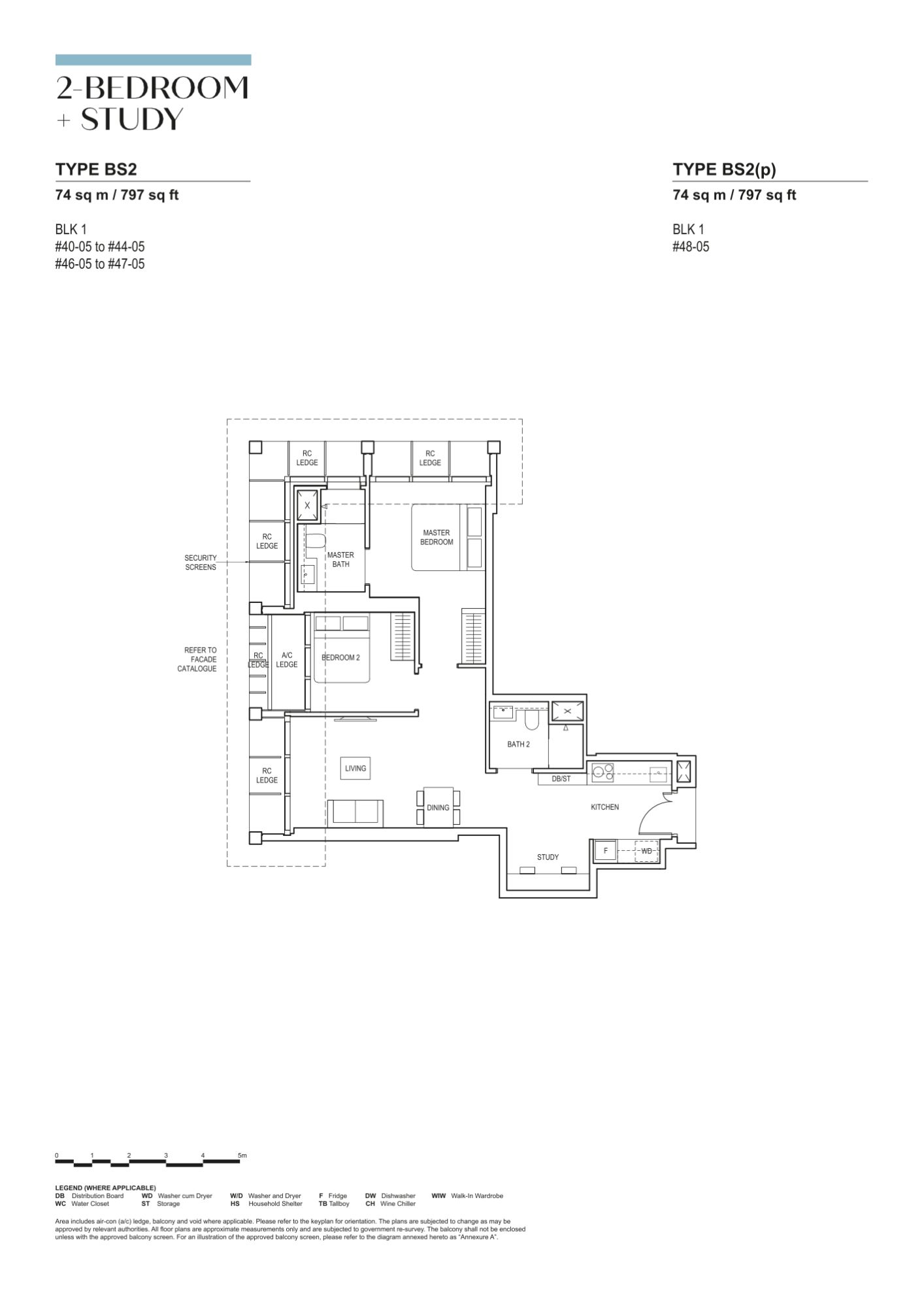 | 2 Bedroom + Study | 183 | 732 - 883 | 26.29% | BS1 - BS6 | $474 |