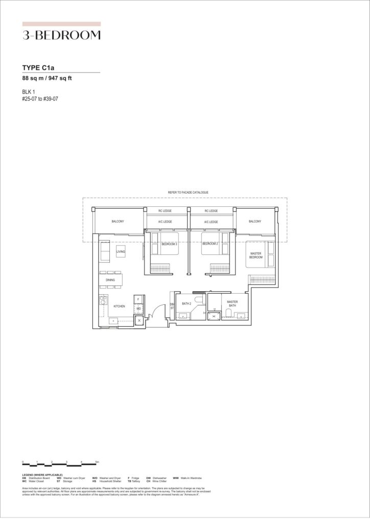 | 3 Bedroom | 60 | 893 - 1259 | 8.62% | C1 - C3 | $553 |