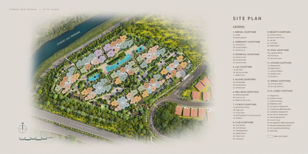 Faber Residence is located at 54–70 Faber Walk, District 5, within the mature Clementi–West Coast neighbourhood. The development sits near Clementi MRT (EW23 / CR17) and enjoys excellent connectivity via PIE, AYE and West Coast Highway, making it highly convenient for residents working in the CBD, one-north, Jurong Lake District, NUS, NUH and Science Park.
