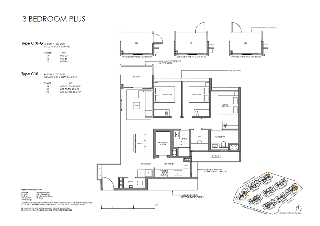 | 3 Bedroom (Plus) | 50 | 1033 / 1044 | 12.53% | C8, C9, C10, C11 | $0 |