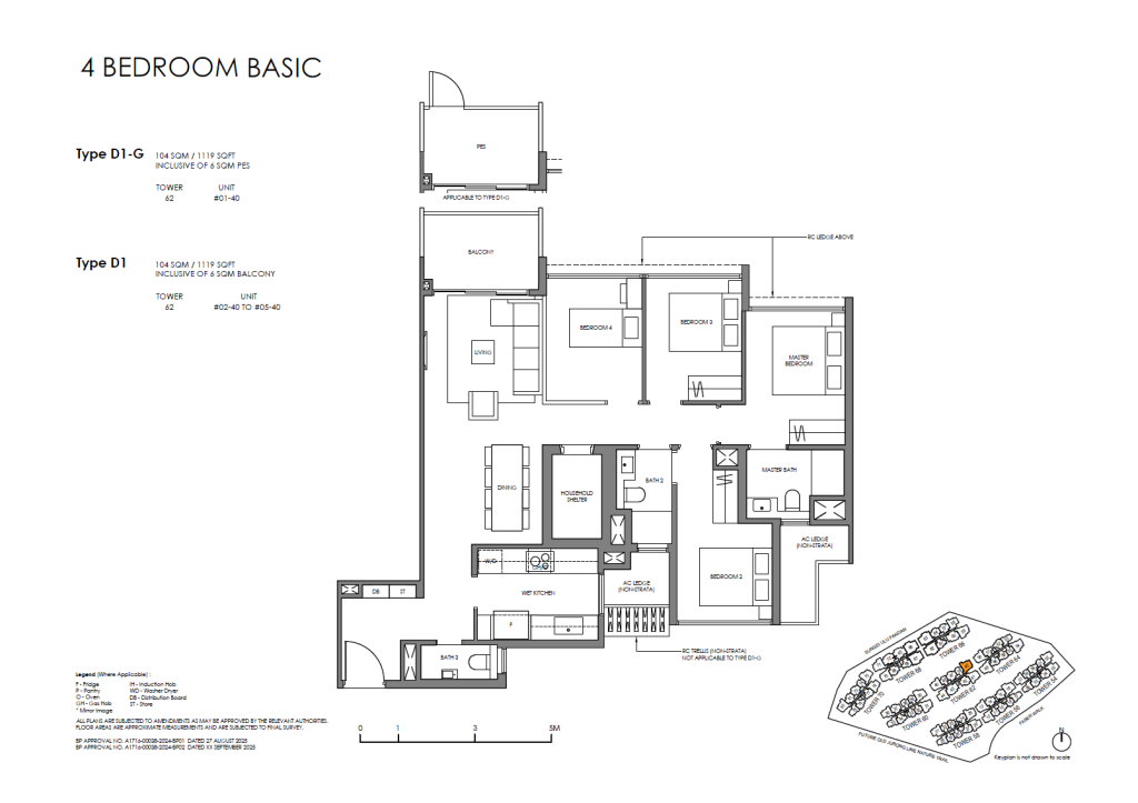 | 4 Bedroom (Basic) | 40 | 1,119 | 10.03% | D1, D2, D3 | $0 |
