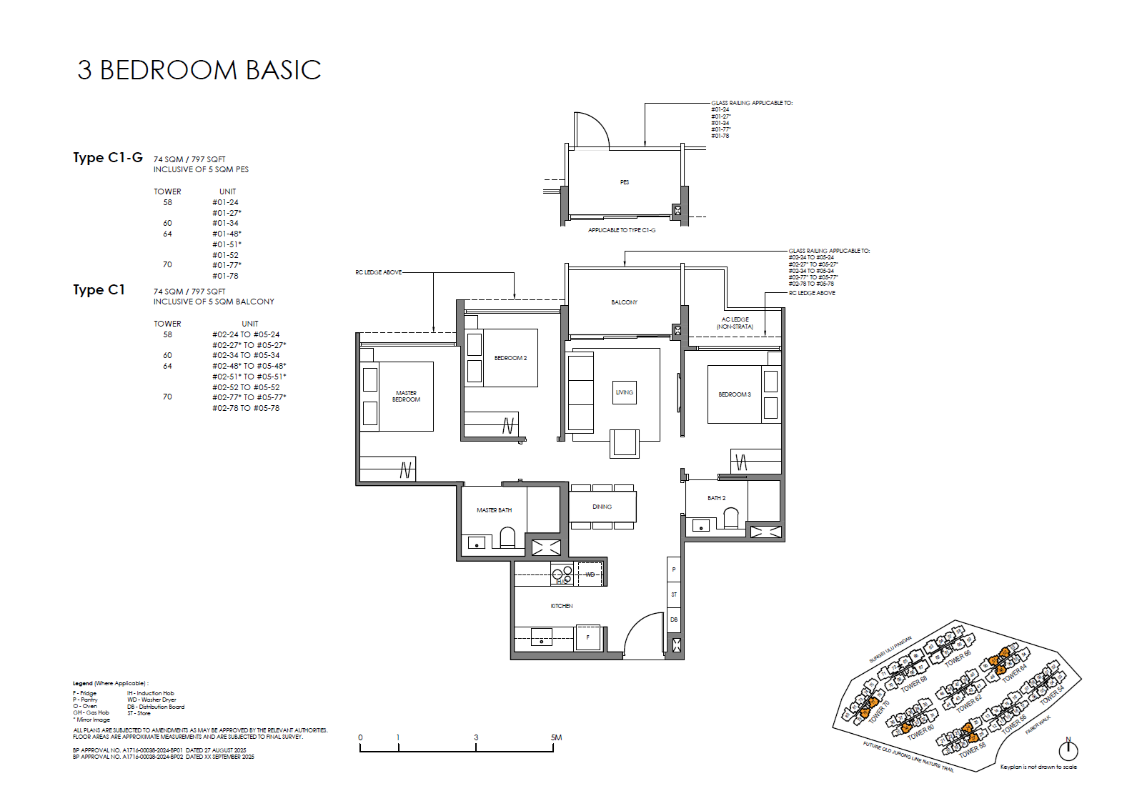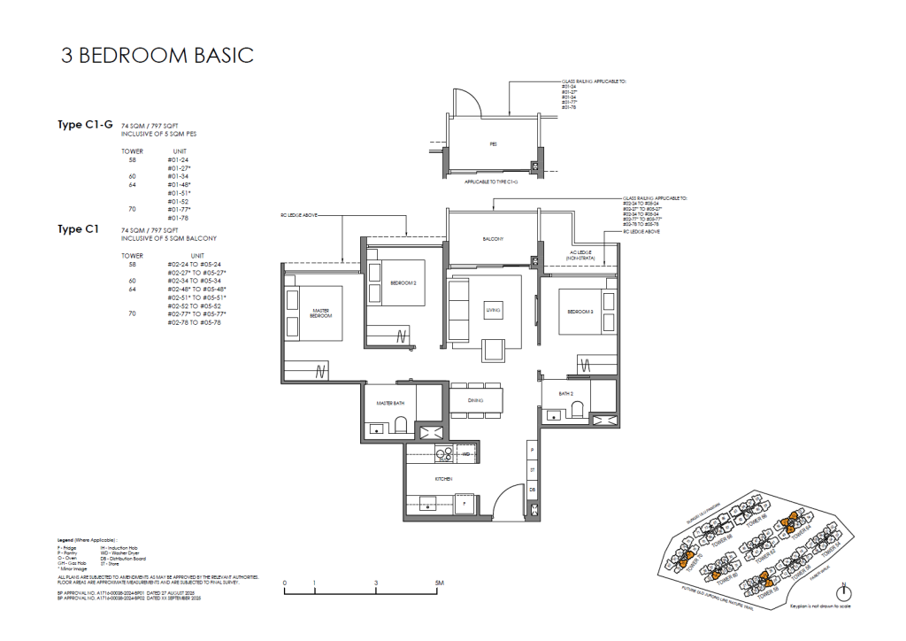 | 3 Bedroom (Basic) | 93 | 797 / 818 | 23.31% | C1, C2, C3, C4 | $0 |
