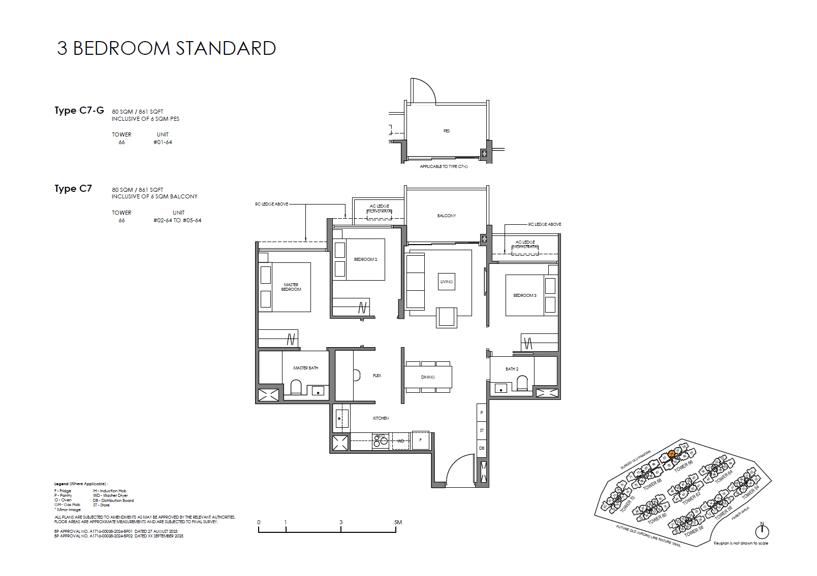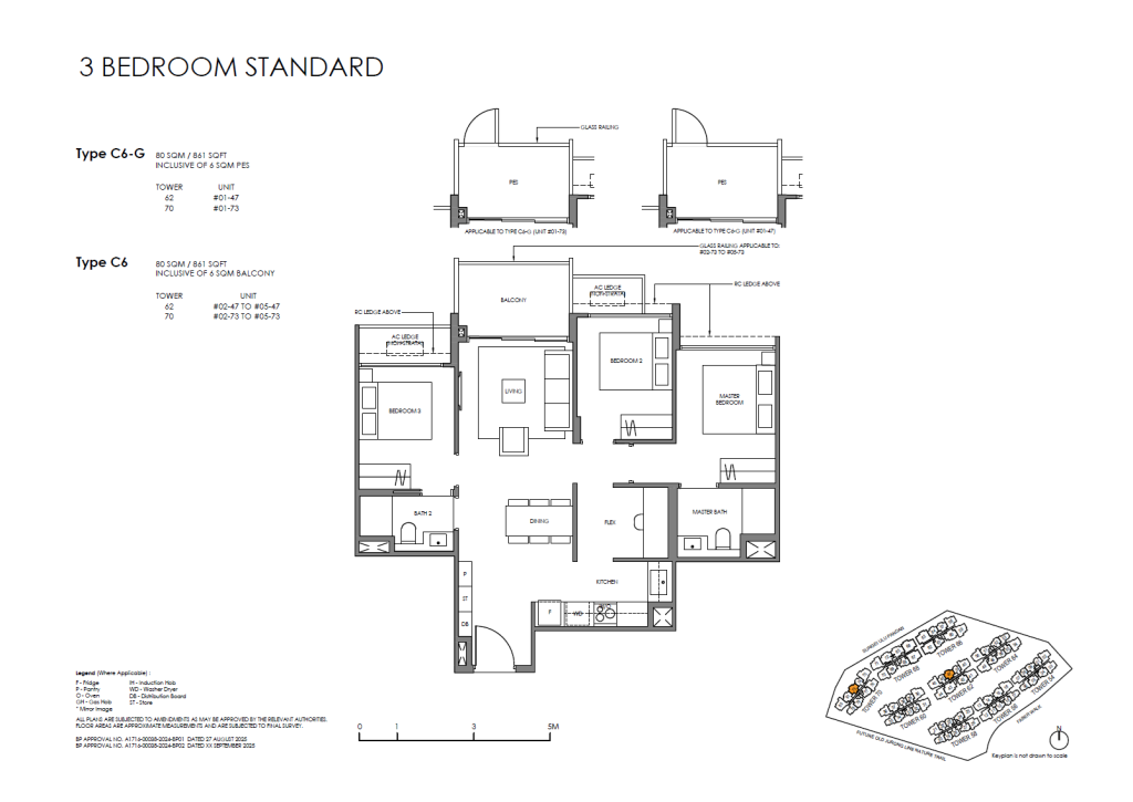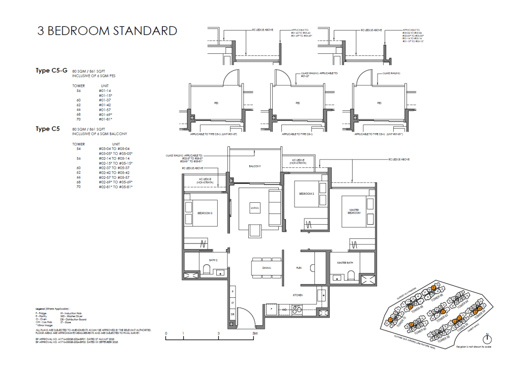 | 3 Bedroom (Standard) | 56 | 861 | 14.04% | C5, C6, C7 | $0 |