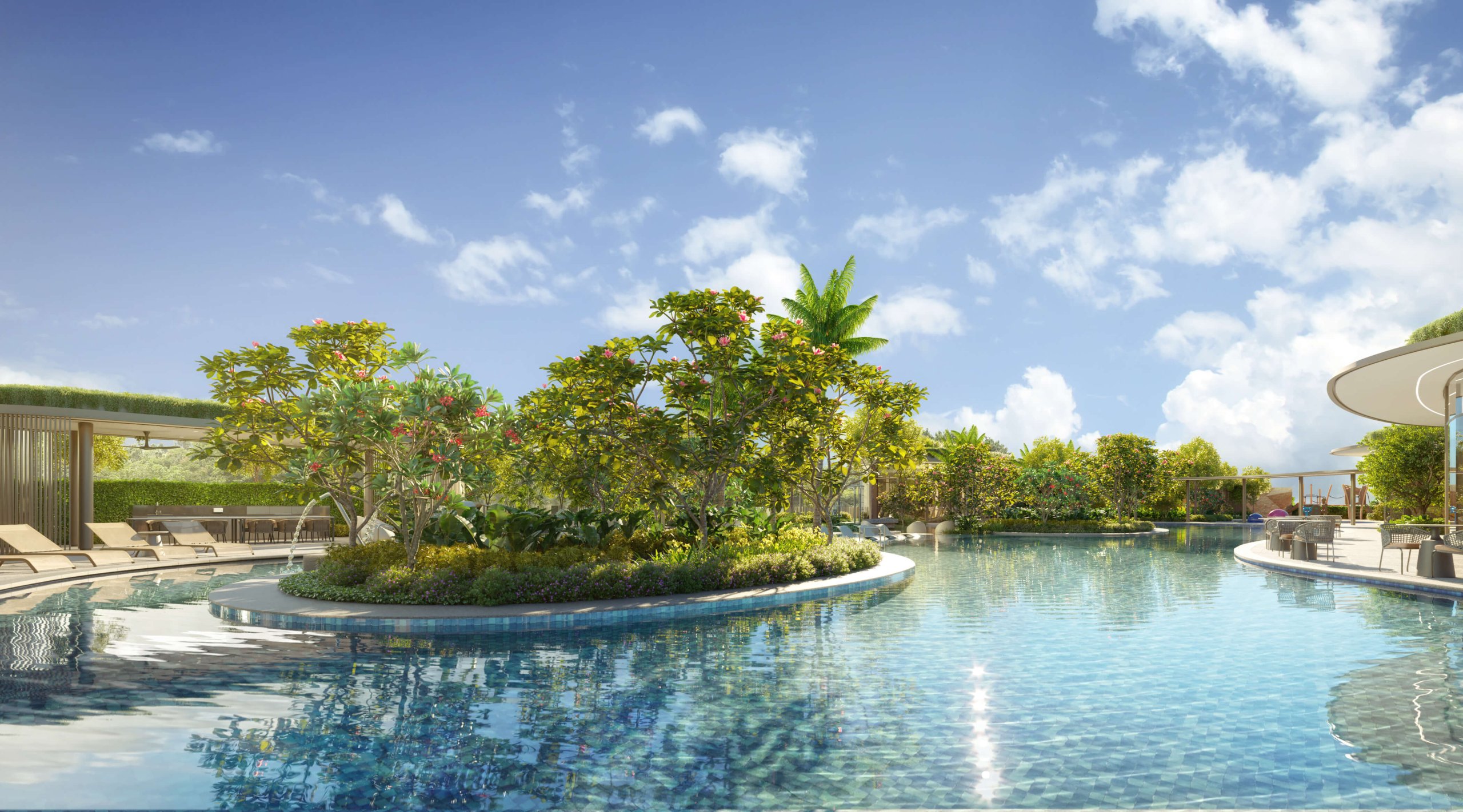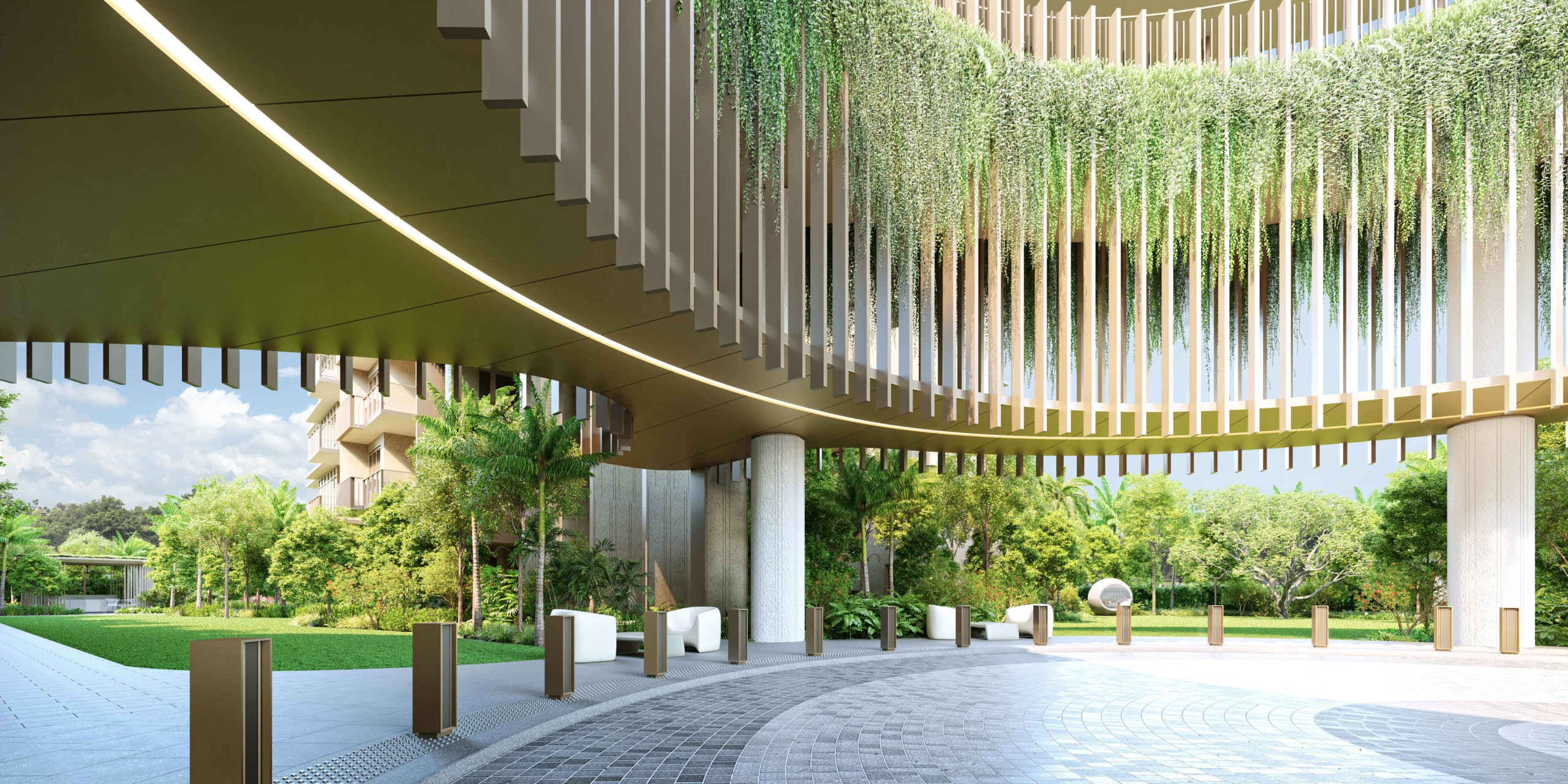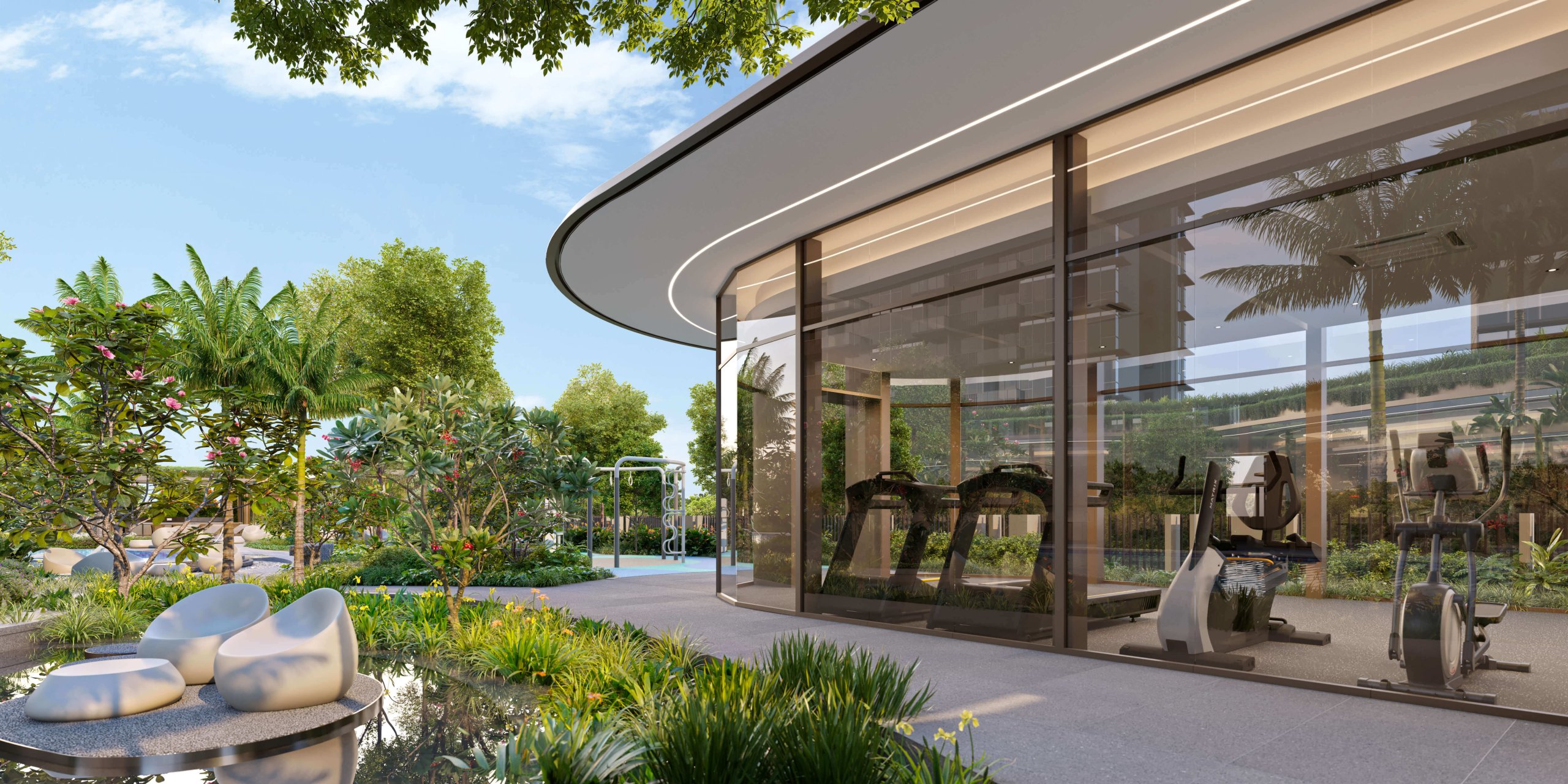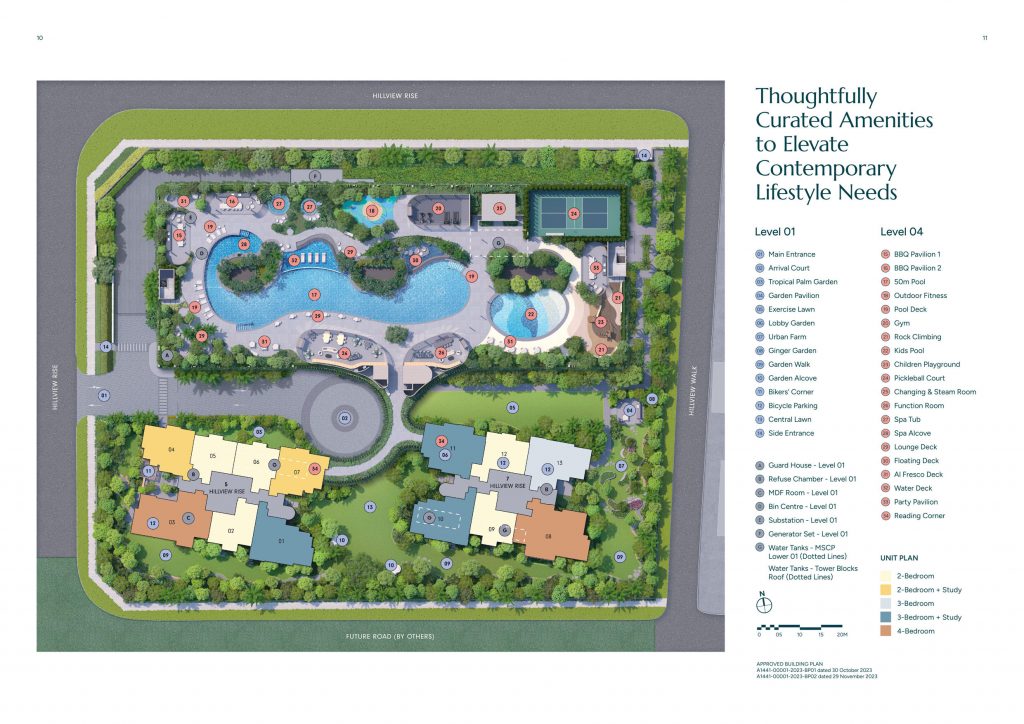 Main Entrance, Arrival Court, Tropical Palm Garden, Garden Pavilion, Exercise Lawn, Lobby Garden, Urban Farm, Ginger Garden, Garden Walk, Garden Alcove, Bikers’ Corner, Bicycle Parking, Central Lawn, Side Entrance, BBQ Pavilion 1, BBQ Pavilion 2, 50m Pool, Outdoor Fitness, Pool Deck, Gym, Rock Climbing, Kids Pool, Children Playground, Pickleball Court, Changing & Steam Room, Function Room, Spa Tub, Spa Alcove, Lounge Deck, Floating Deck, Al Fresco Deck, Water Deck, Party Pavilion, Reading Corner