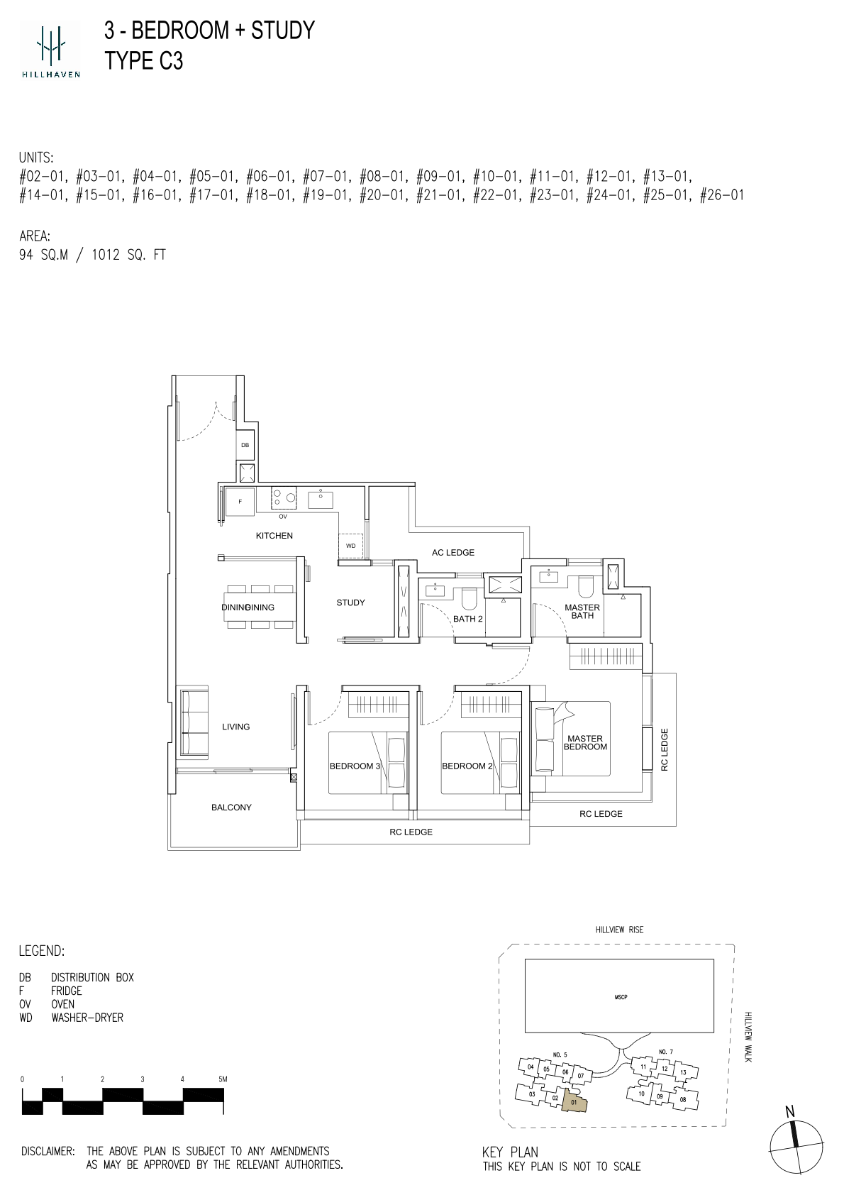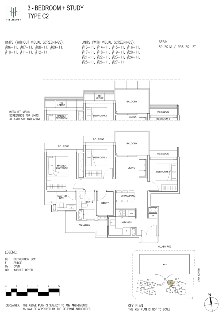 | 3 Bedroom + Study | 78 | 958 - 1195 | 22.87% | C2, C3, C4 | - |