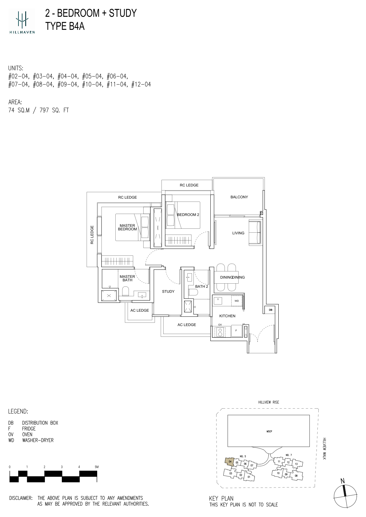 | 2 Bedroom + Study | 48 | 797 | 14.08% | B4A, B4B, B4C | - |