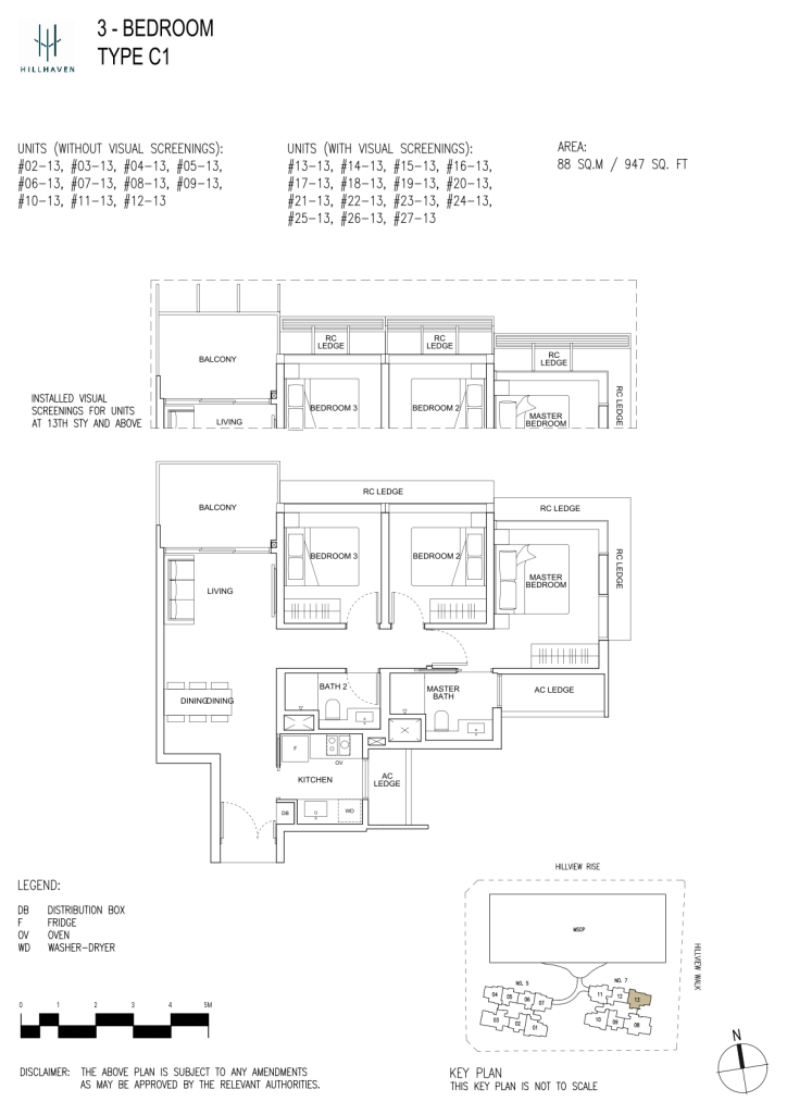 | 3 Bedroom | 27 | 947 - 1141 | 7.92% | C1 | - |