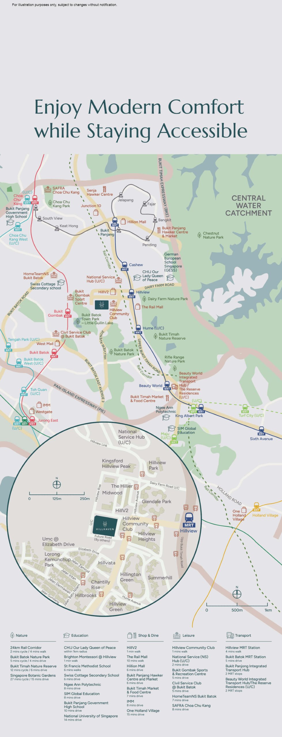 Residents enjoy a short 4-minute stroll to Hillview MRT (Downtown Line), providing direct, seamless access to major MRT interchanges. Within just 10 stops, you can connect to every major MRT line in Singapore, making Hillhaven exceptionally well-connected for work, school and leisure.