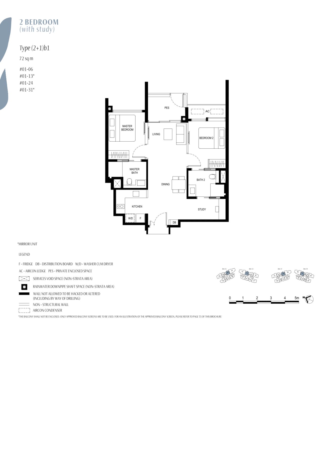 | 2 Bedroom + Study | 36 | 753 | 13.04% | (2+1)a | $523 |