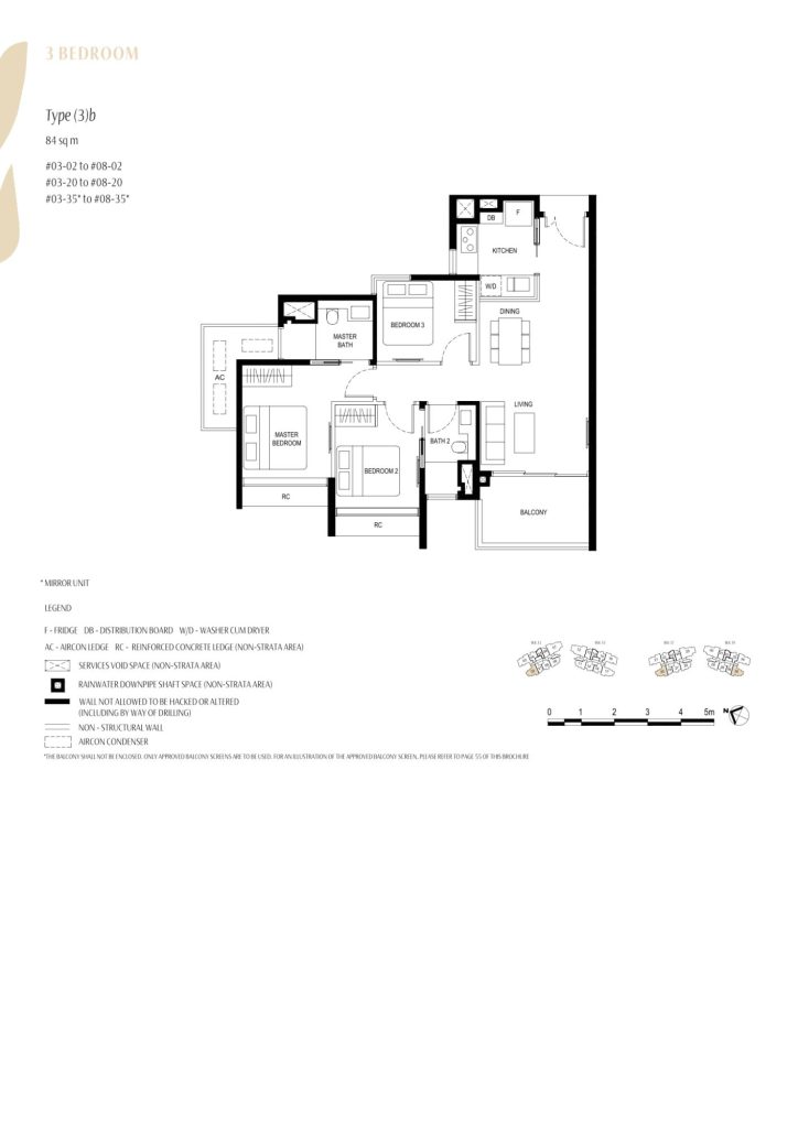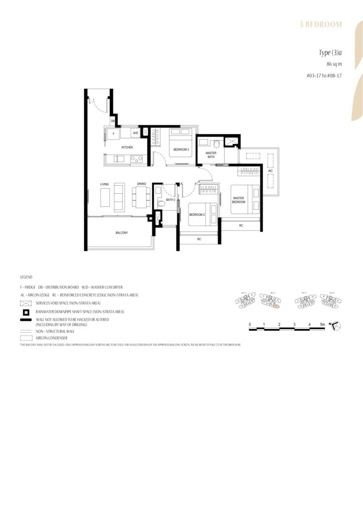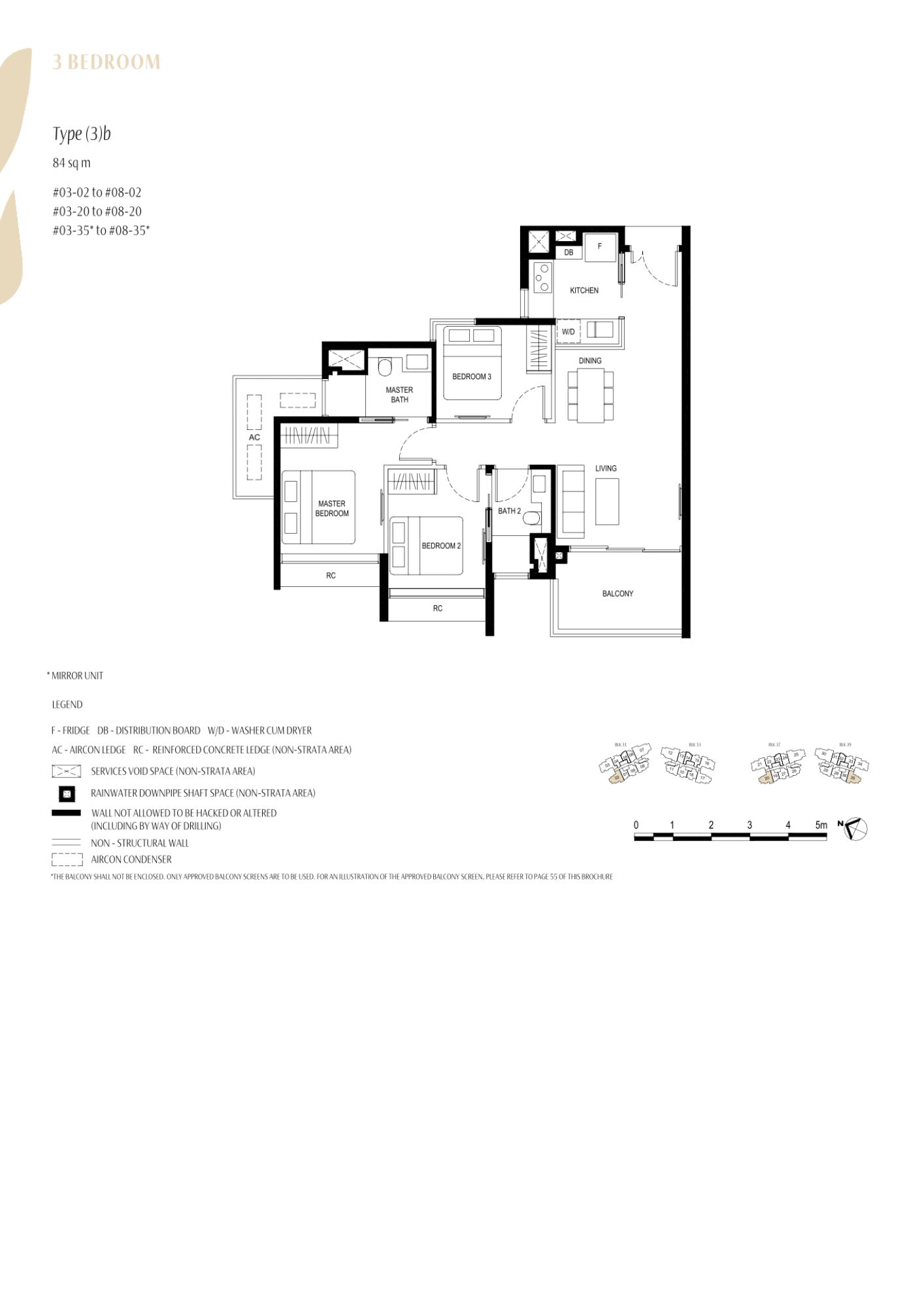 | 3 Bedroom | 36 | 926. - 1055 | 13.04% | (3)a / (3)b / (3Y)a | $523 |