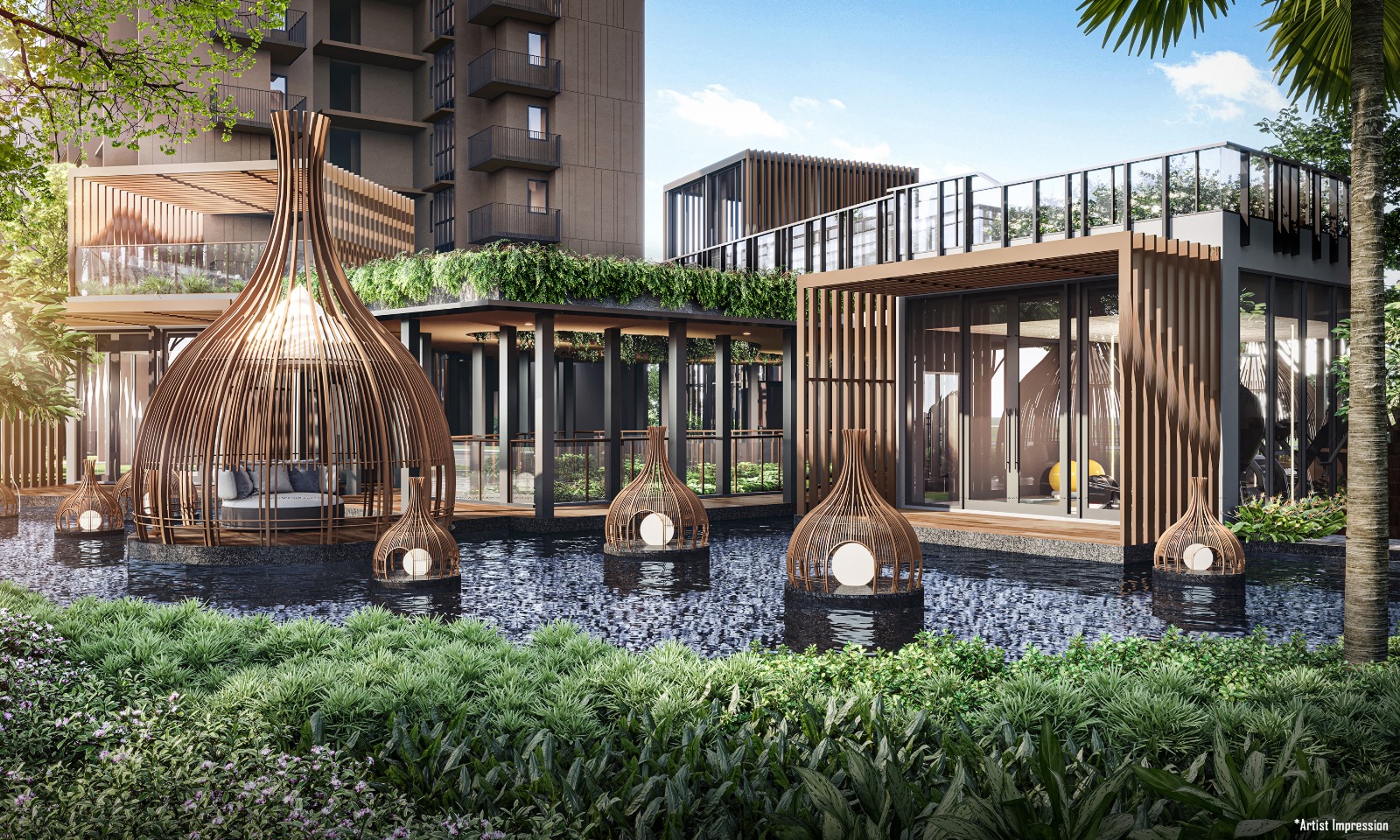 Multi-purpose Rooms, Gym, Lantern Pavilion, Lantern Pond, View Deck, Sky Leisure Walk, Pavilion with BBQ Pit, Arrival Plaza, Foliage Decks, Cascading Water Feature, Toilet & Changing Room (Male & Female), Accessible Toilet, 50m Lap Pool, Sun Deck, Forest Spa Pod, Water Hammocks, Poolside Pavilion, Children Aqua Play (Water Play Equipment), Aqua Slide, Poolside Lounge, Leisure Pool, Aqua Deck, Hammock Lawn, Island Pavilion, Picnic Lawn, BBQ Pavilion, Urban Farming Plots, Floating Pavilion, Cocoon Pods, Lotus Pond, Waterlily Pond, Meditation Deck, Taichi Deck, Fitness Lawn, Outdoor Fitness Area, Floating Pod, Play Court (Open Air), Children Playground, Pennisetum Walk, Pennisetum Deck, Tarenna Garden, Arrival Court, Floral Alcove, Chillout Alcove, Reading Alcove, Alocasia Alcove, Pedestrian Entry, Pedestrian Side Gate, Guard House, Bicycle Parking Area