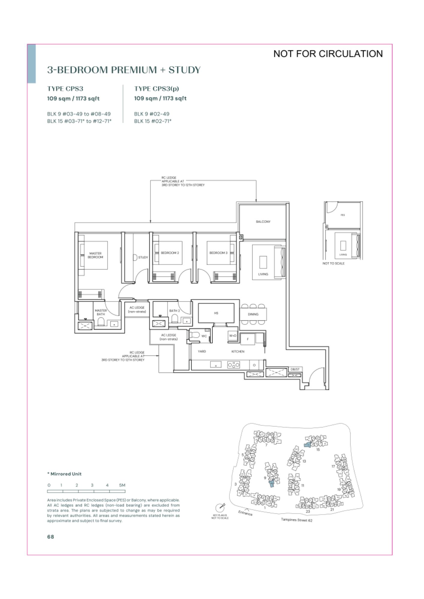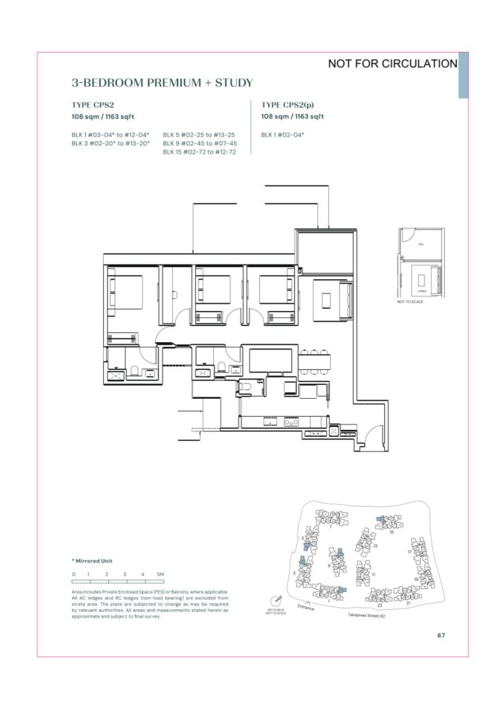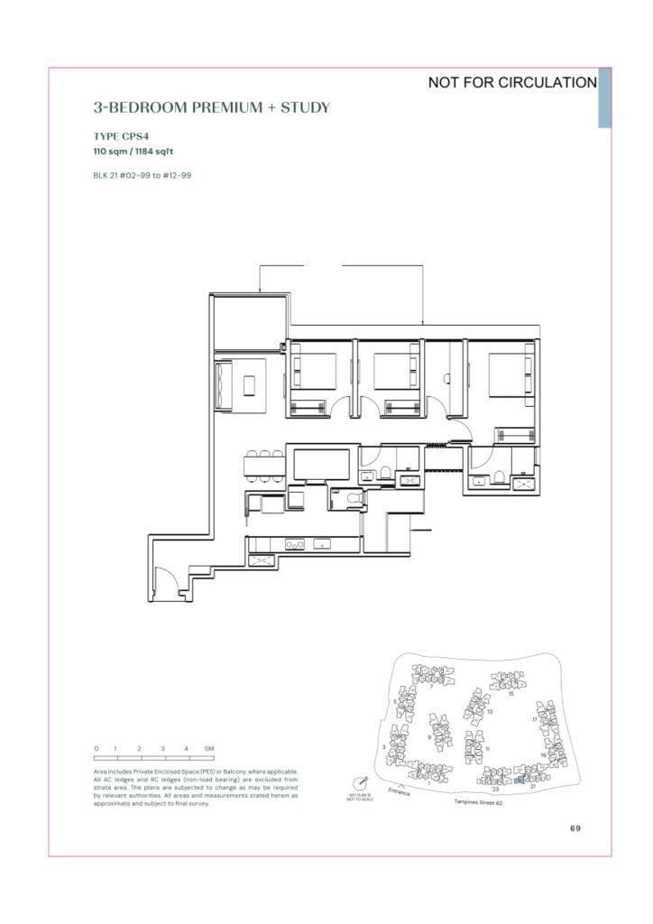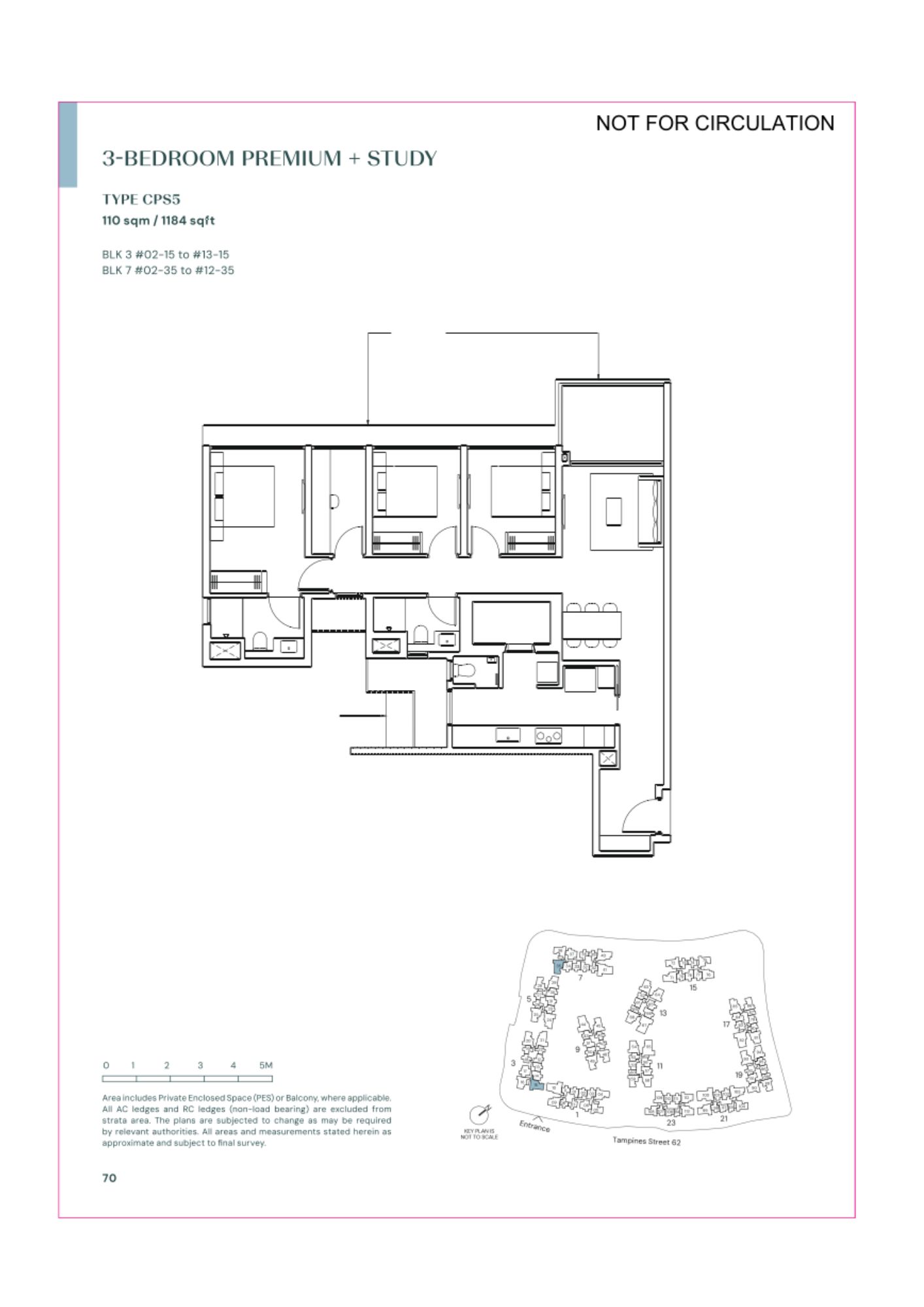 | 3 Bedroom Premium + Study | 115 | 1163 - 1184 | 9.64% | CPS1 - CPS5 | $514 |