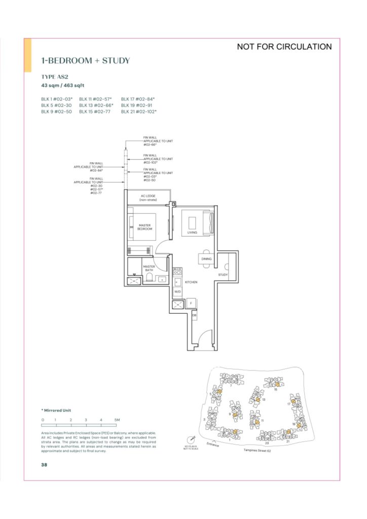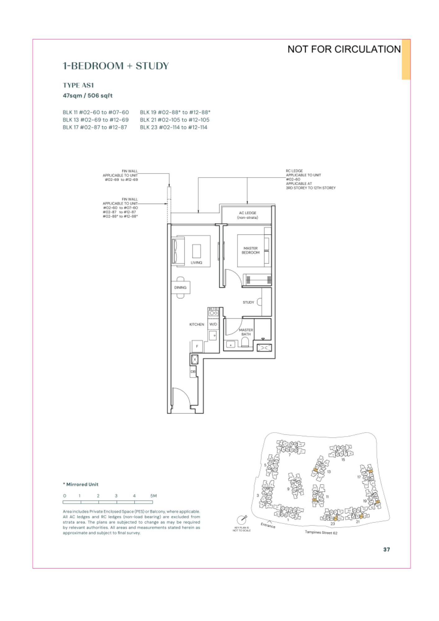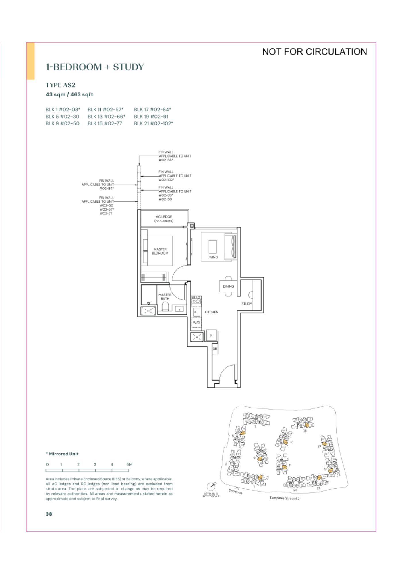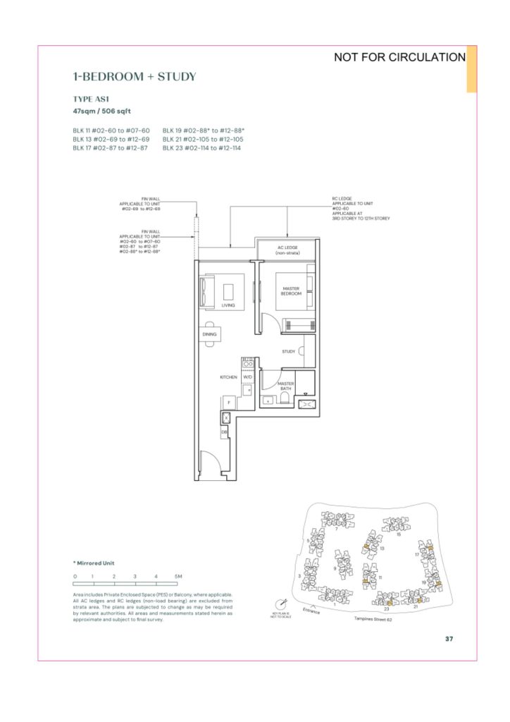 | 1 Bedroom +Study | 73 | 463 - 506 | 6.12% | AS1 - AS4 | $362 |