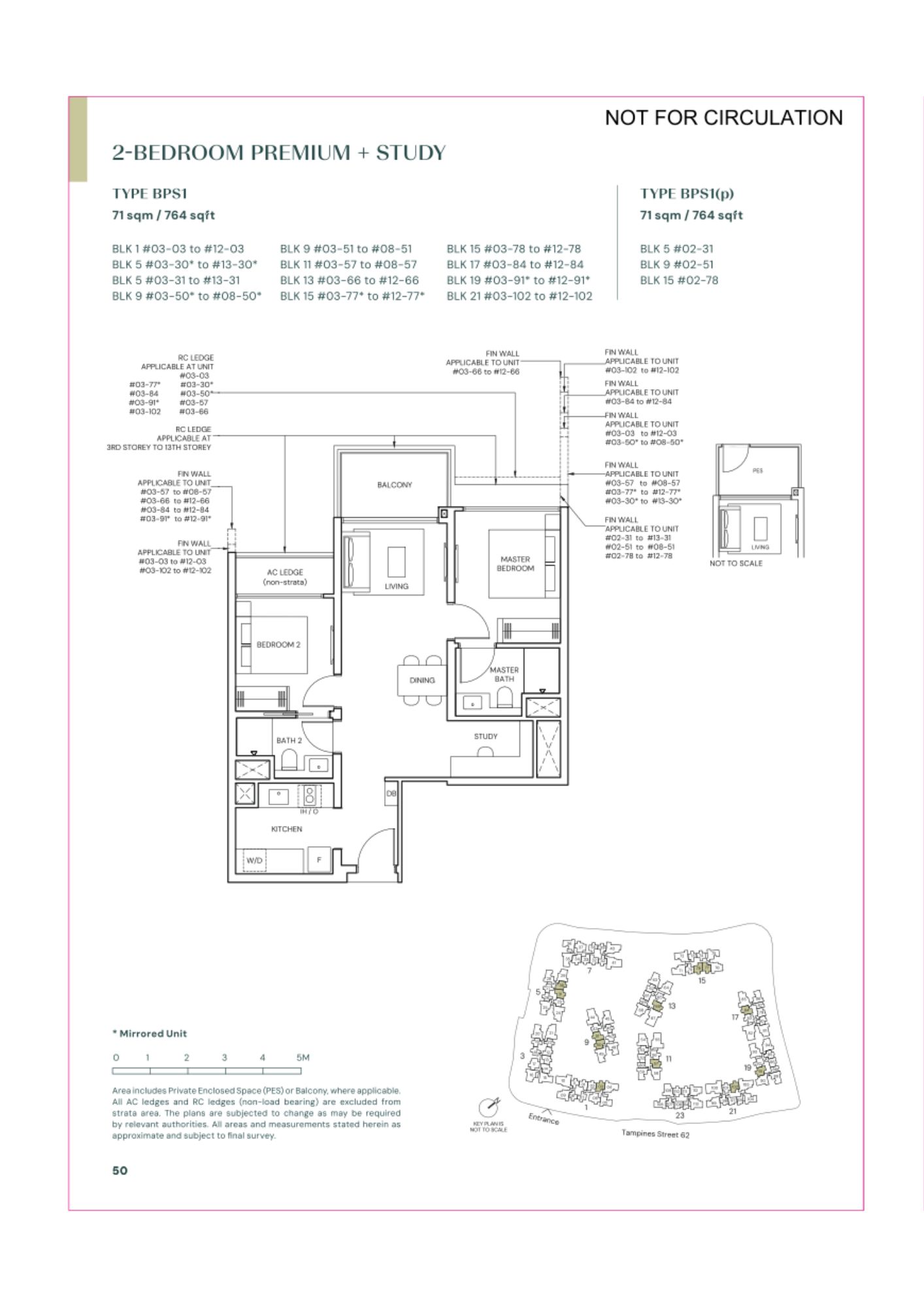 | 2 Bedroom Premium + Study | 134 | 764 | 11.23% | BPS1, BPS2 | $442 |