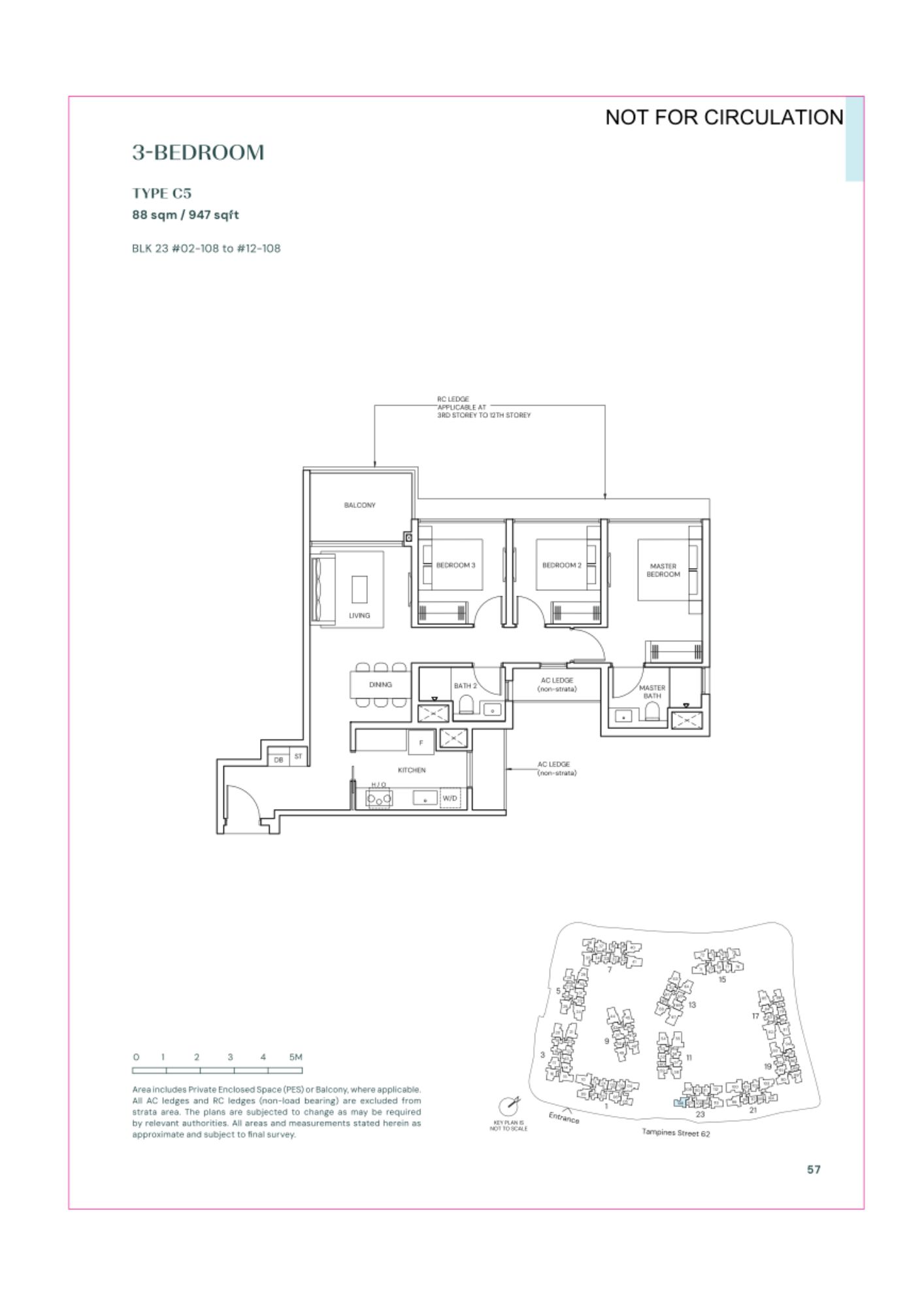 | 3 Bedroom | 135 | 926 - 947 | 11.32% | C1 - C5 | $442 |