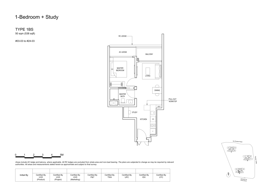 | 1 Bedroom + Study | 80 | 527 | 13.42% | AS1 / AS2 | $325 |