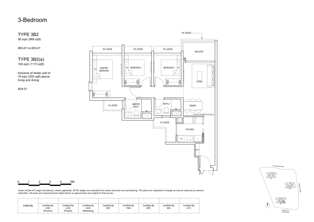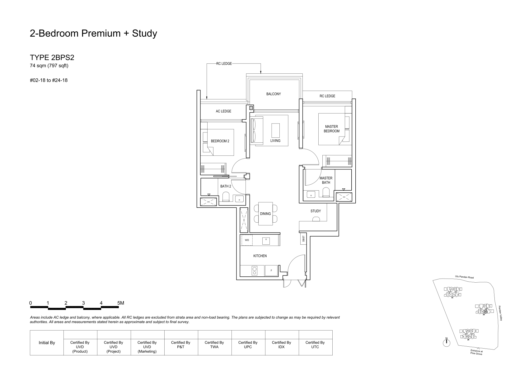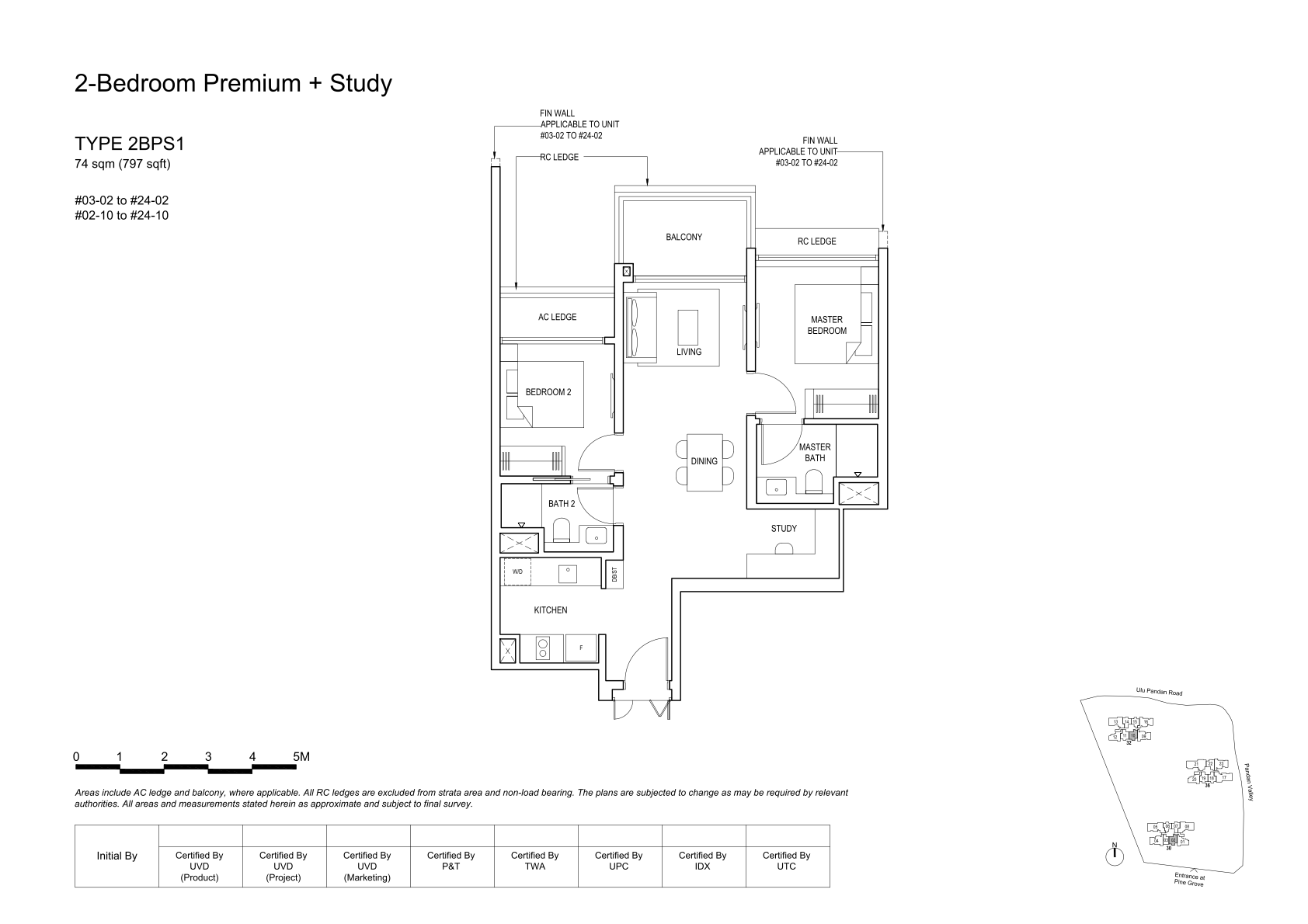 | 2 Bedroom + Study | 120 | 764 - 797 | 20.13% | BS1 - BS3 | $390 |
