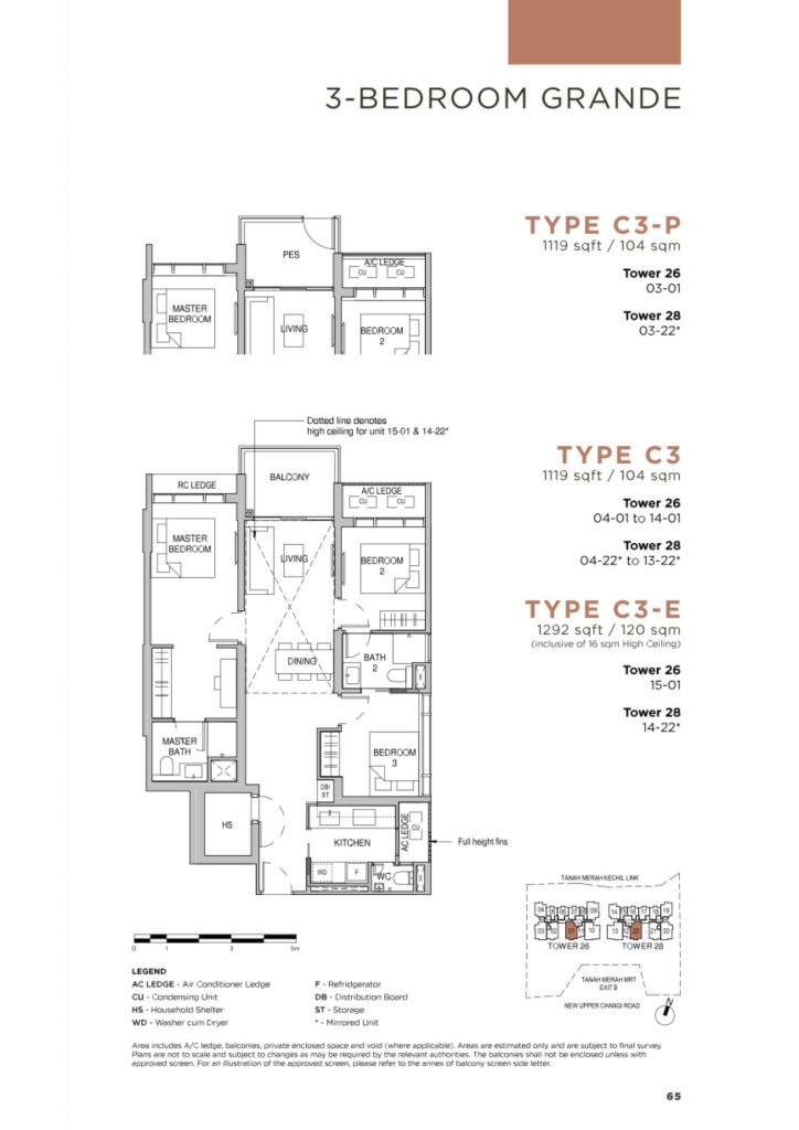 | 3 Bedroom Grande | 25 | 1119 - 1292 | 9.33% | C3 | $436 |