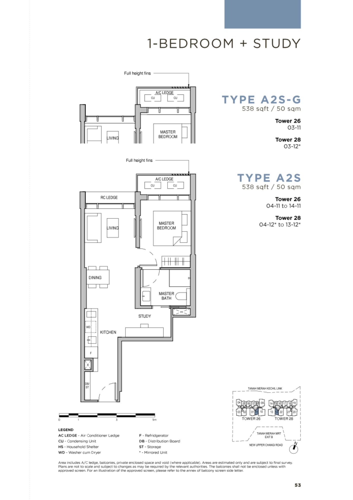 | 1 Bedroom + Study | 23 | 538 | 8.58% | A2S | $375 |