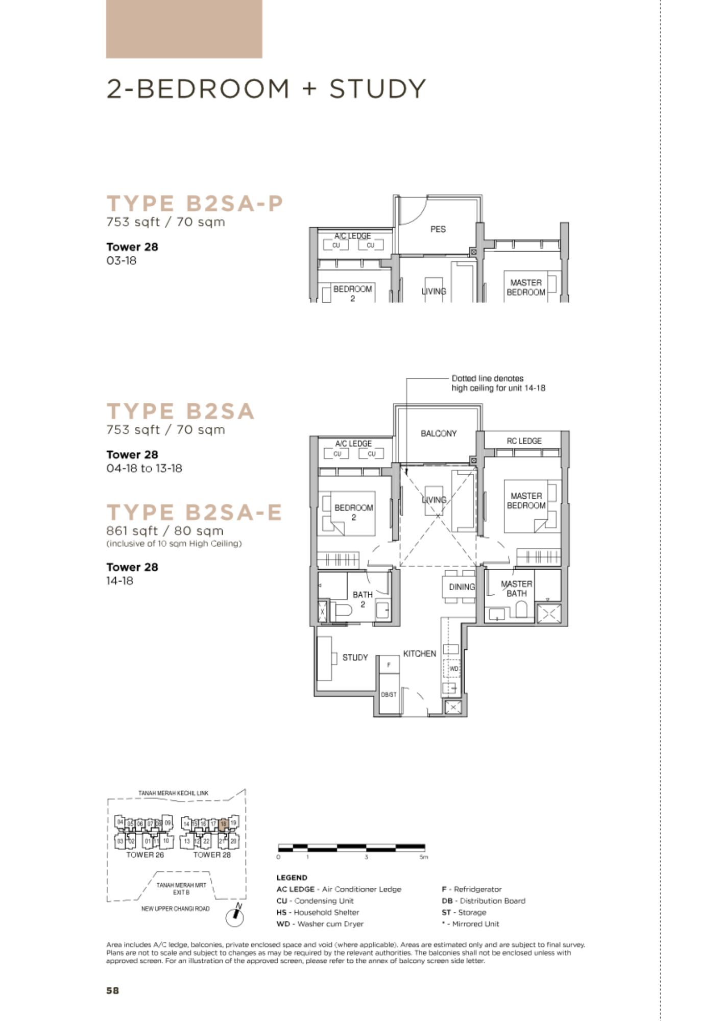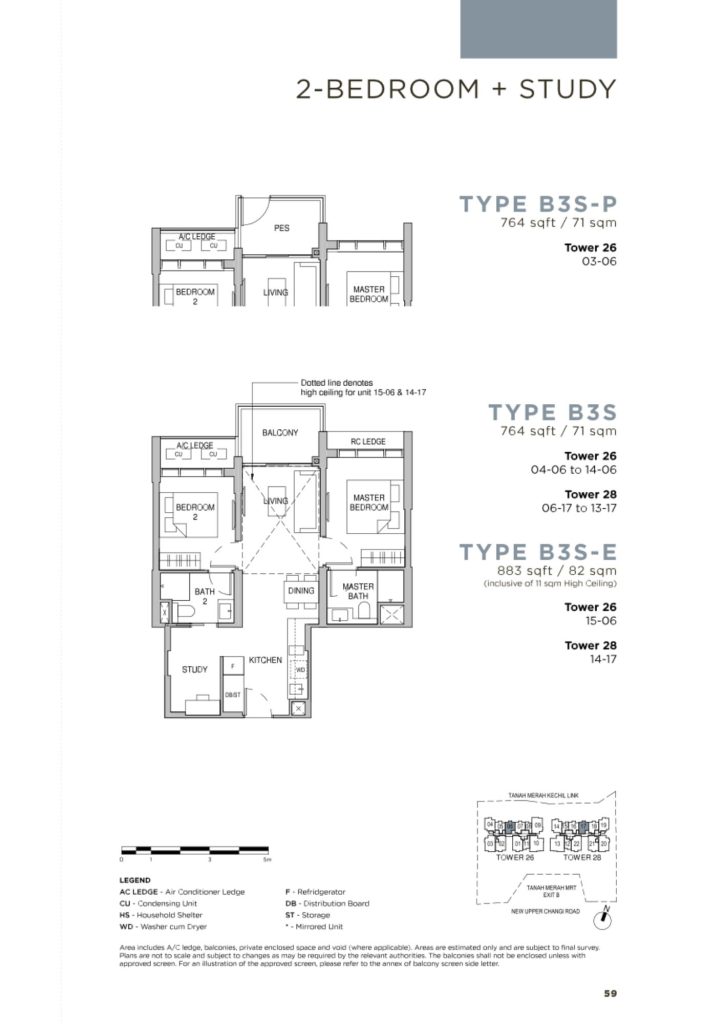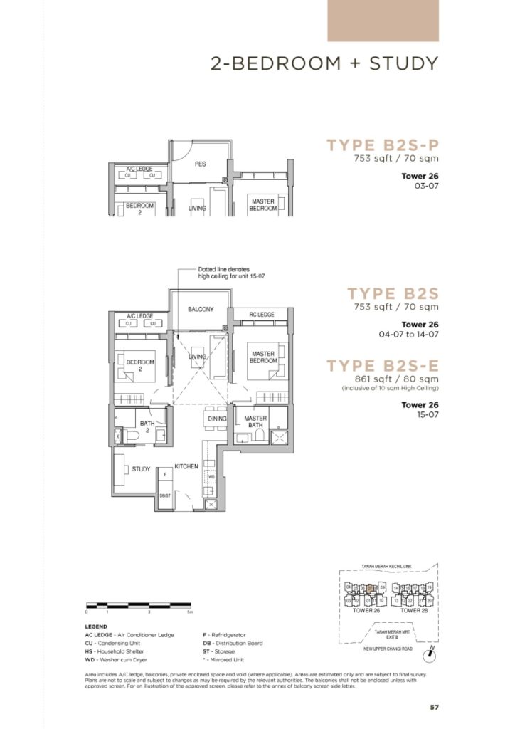 | 2 Bedroom + Study | 47 | 753 - 883 | 17.54% | B2S / B3S | $523 |