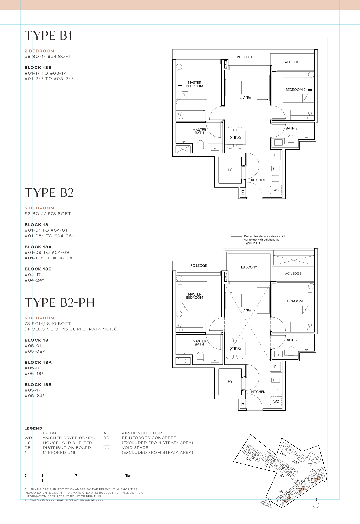 There are 24 different unit types in Terra Hill. 2 Bedroom units range from 624 to 678 sqft, 2 Bedroom + Study is 807 sqft, 3 Bedroom units range from 904 to 1,335 sqft, 4 Bedroom units range from 1,302 to 1,862 sqft, 5 Bedroom units range from 2,120 to 2,164 sqft, 4 Bedroom Prestige is 1,894 sqft, and 5 Bedroom Prestige is 3,035 sqft.