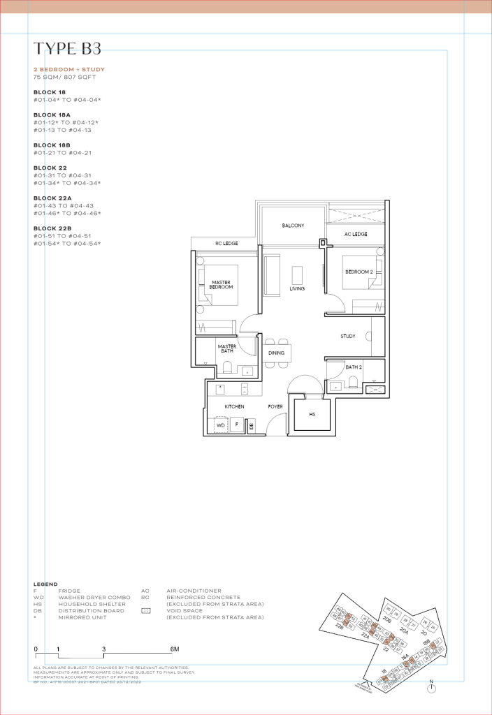 | 2 Bedroom + Study | 40 | 807 | 14.81% | B3 | $480 |