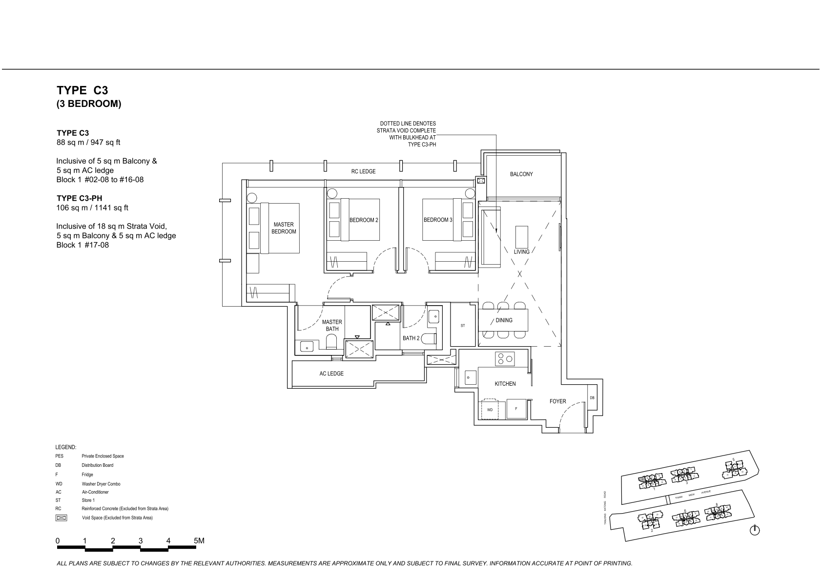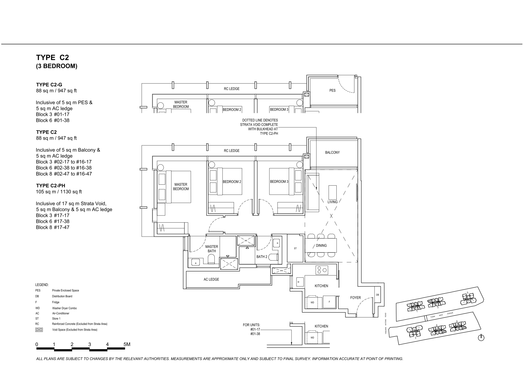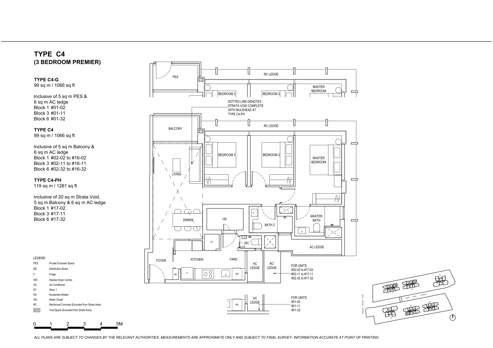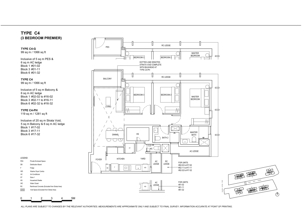 | 3 Bedroom Premier | 136 | 1066 - 1087 | 16.67% | C4, C5, C6, C7 | $360 |