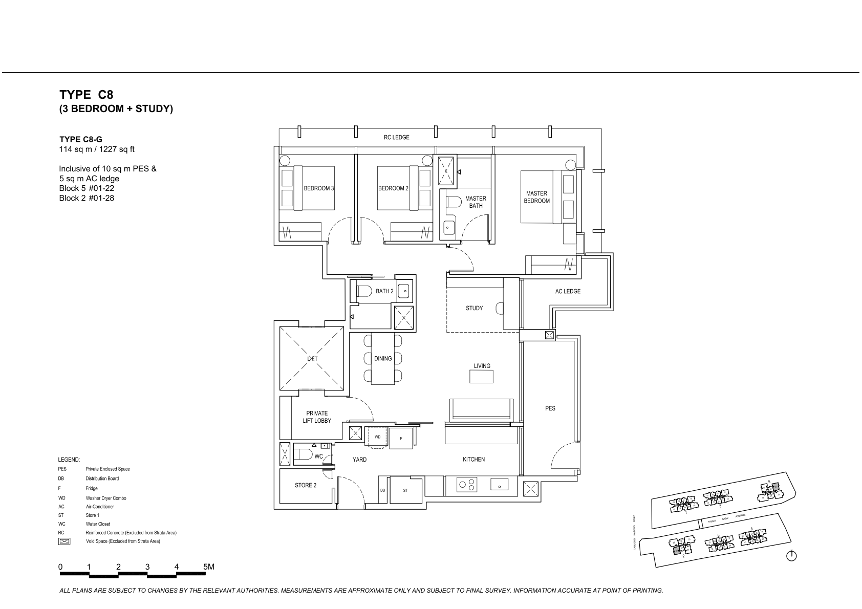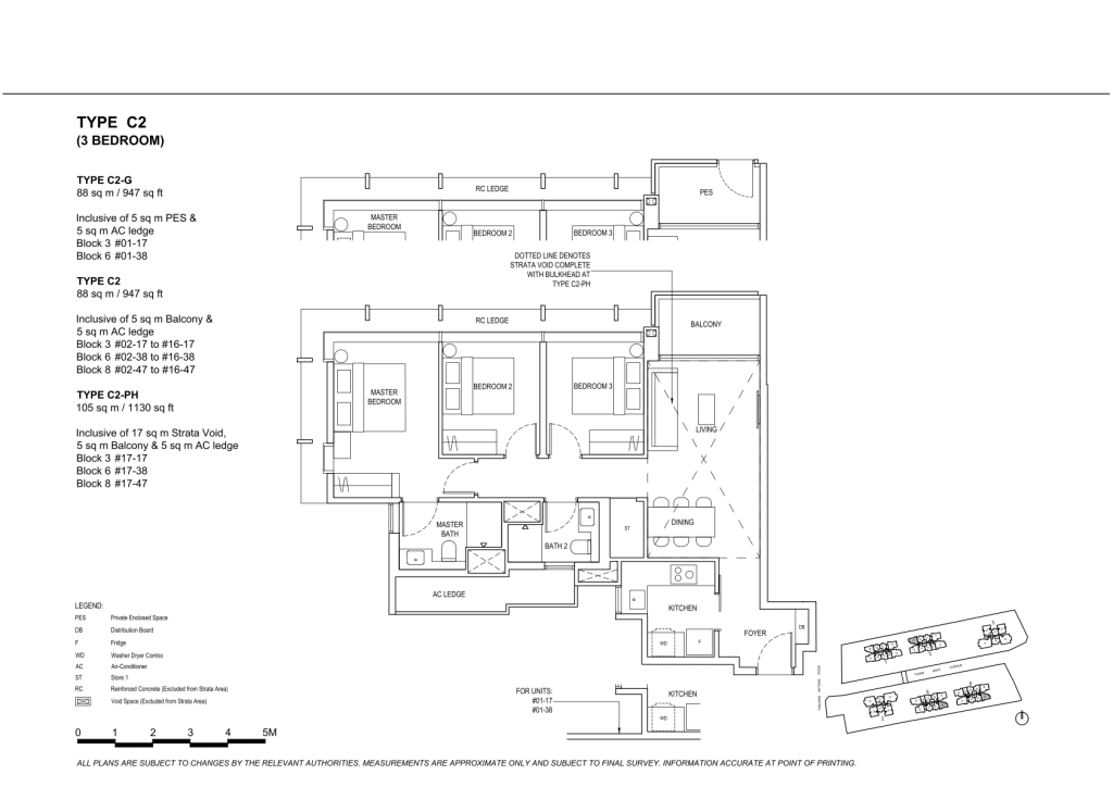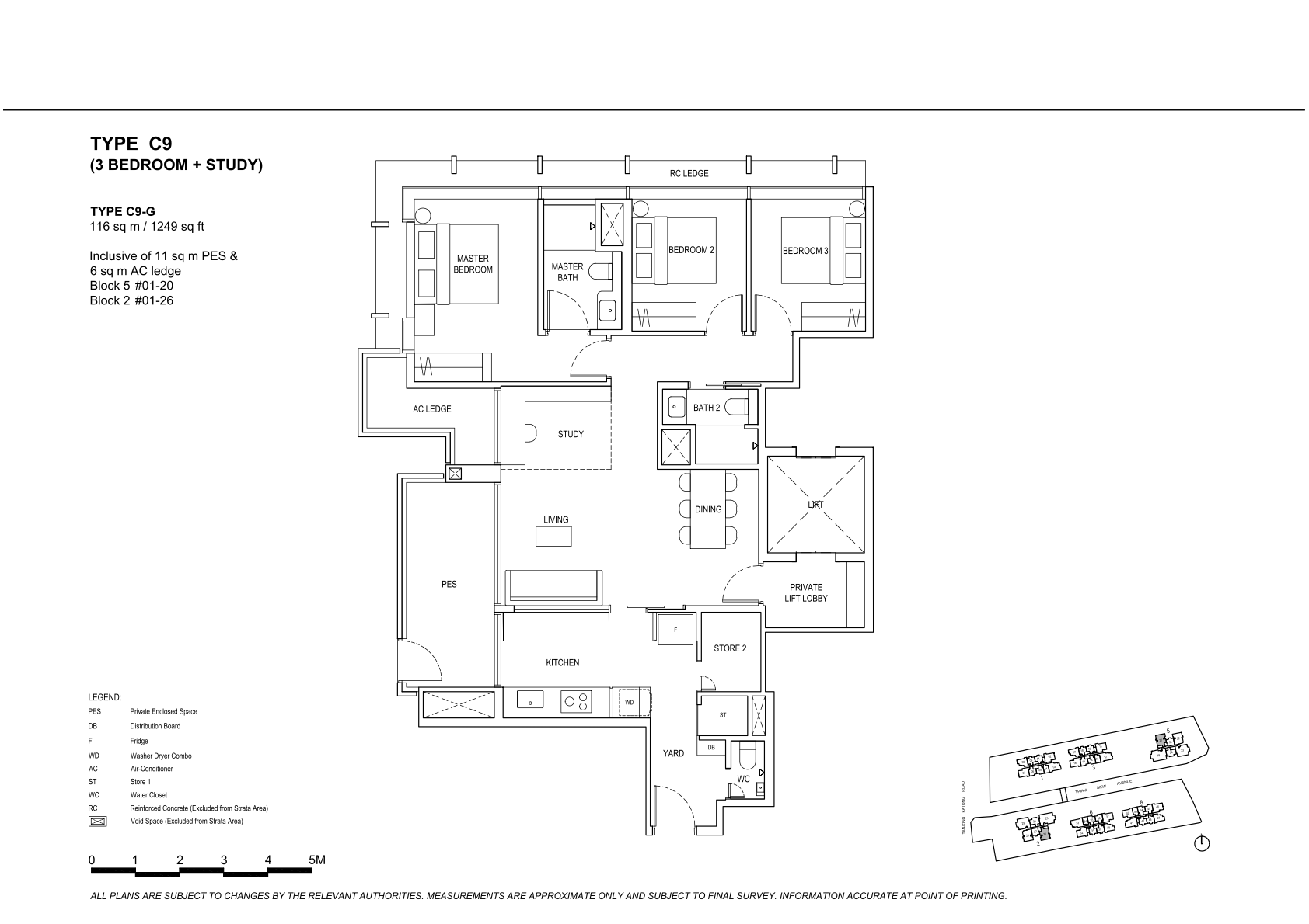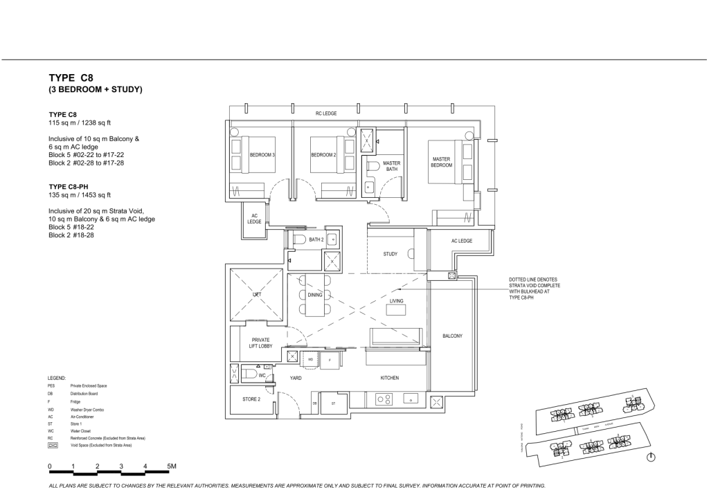 | 3 Bedroom + Study | 72 | 1238 - 1249 | 8.82% | C8, C9 | $420 |