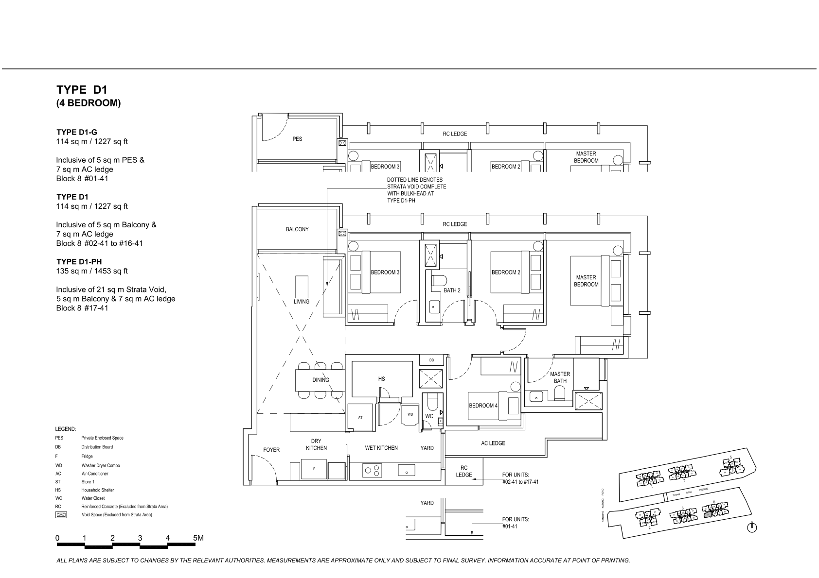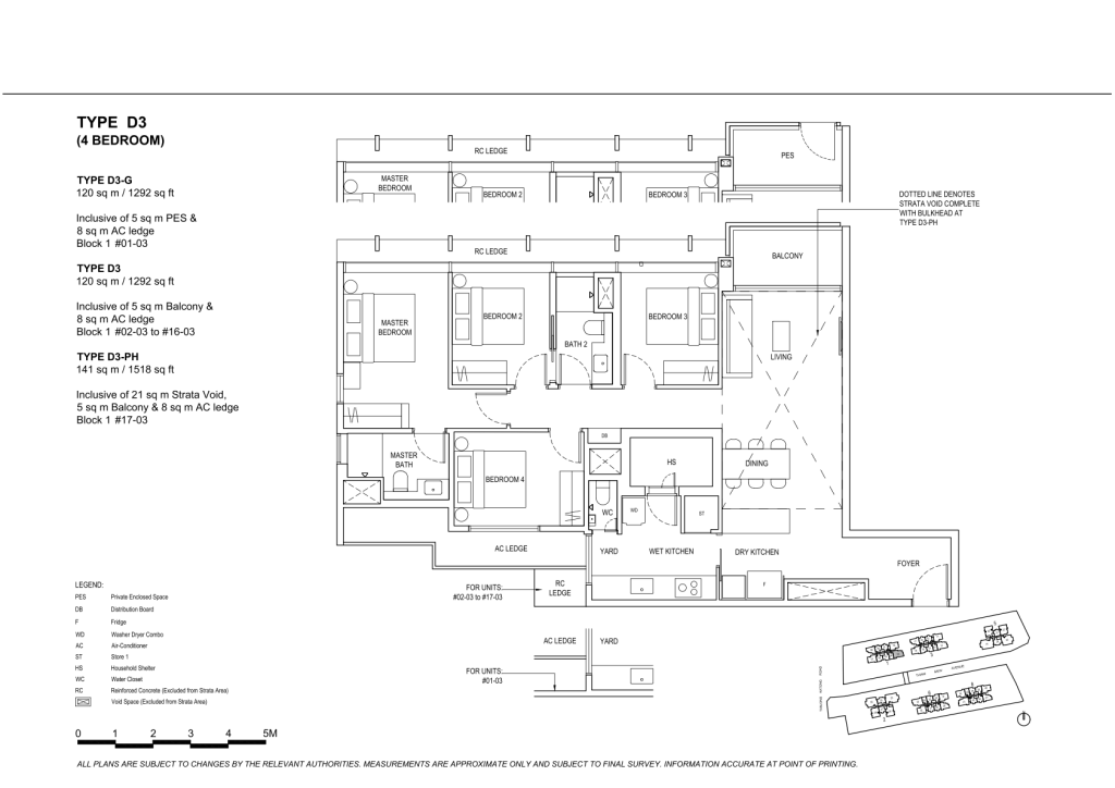 | 4 Bedroom | 68 | 1227 - 1292 | 8.33% | D1, D2, D3 | $420 |