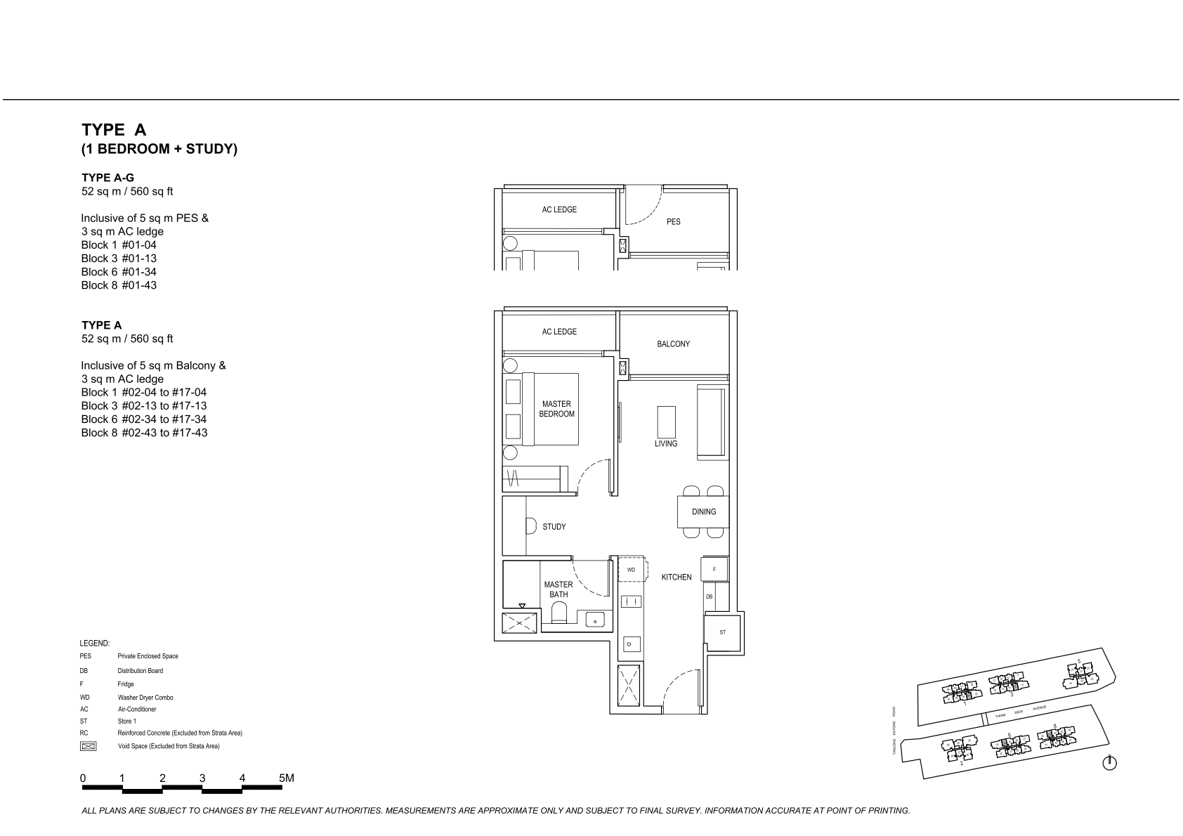 | 1 Bedroom + Study | 68 | 560 | 8.33% | A | $360 |