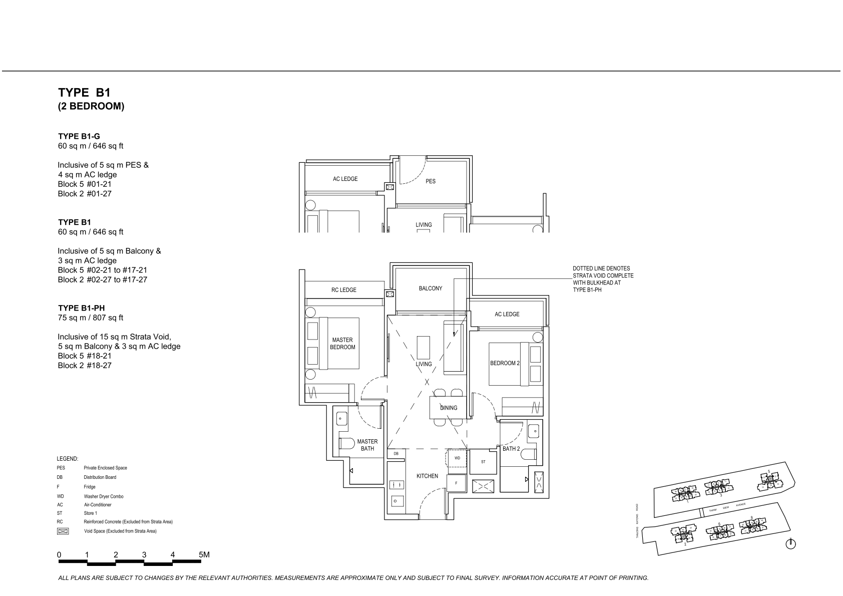 | 2 Bedroom | 170 | 646 - 667 | 20.83% | B1, B2 | $360 |
