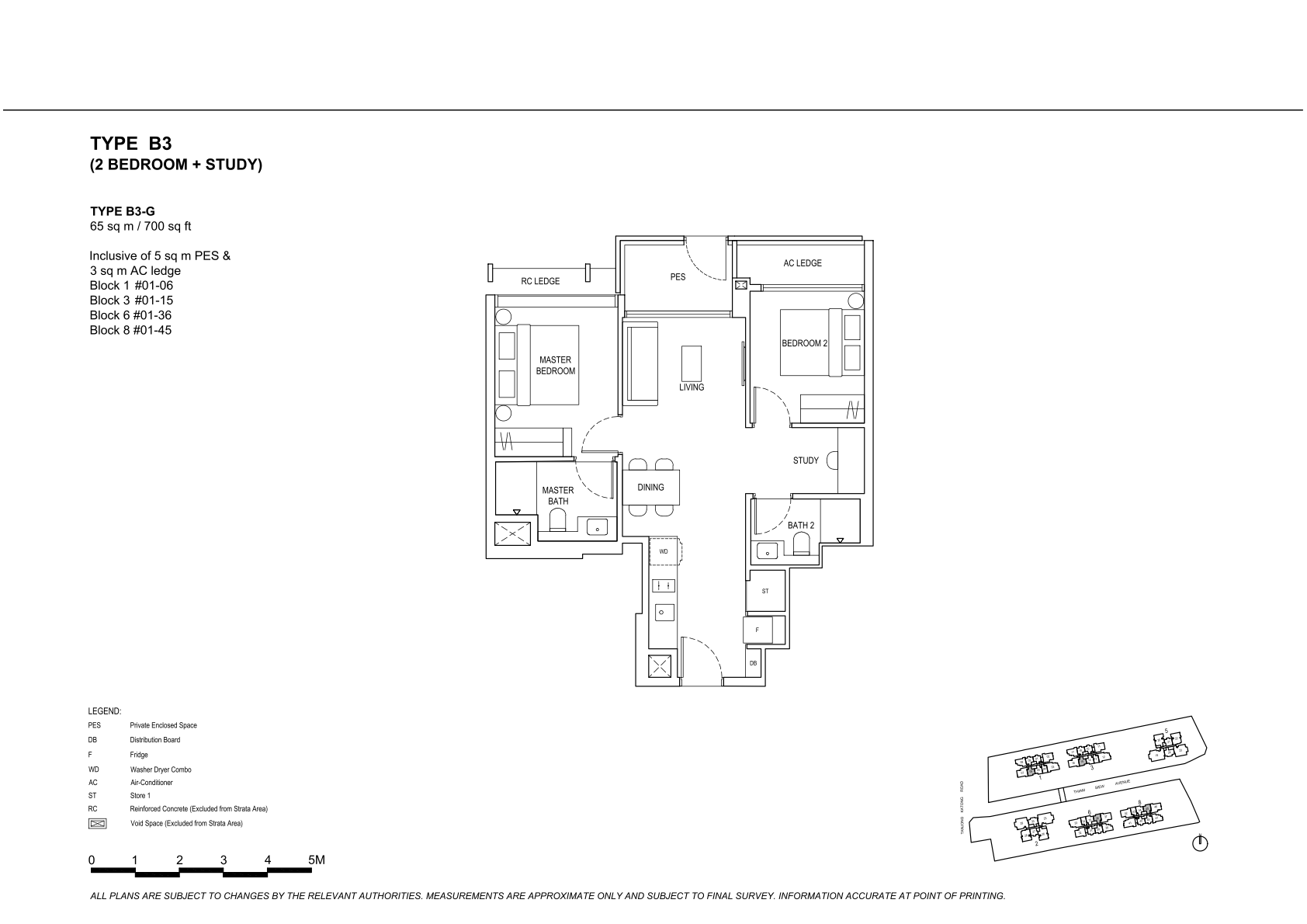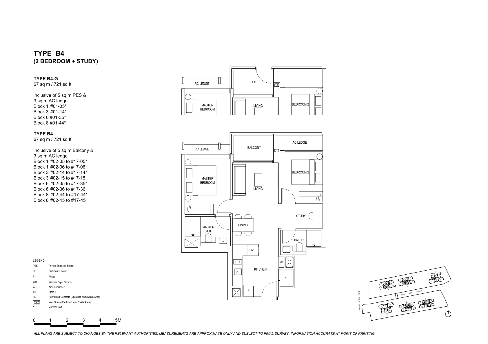 | 2 Bedroom + Study | 136 | 700 - 721 | 16.67% | B3, B4 | $360 |
