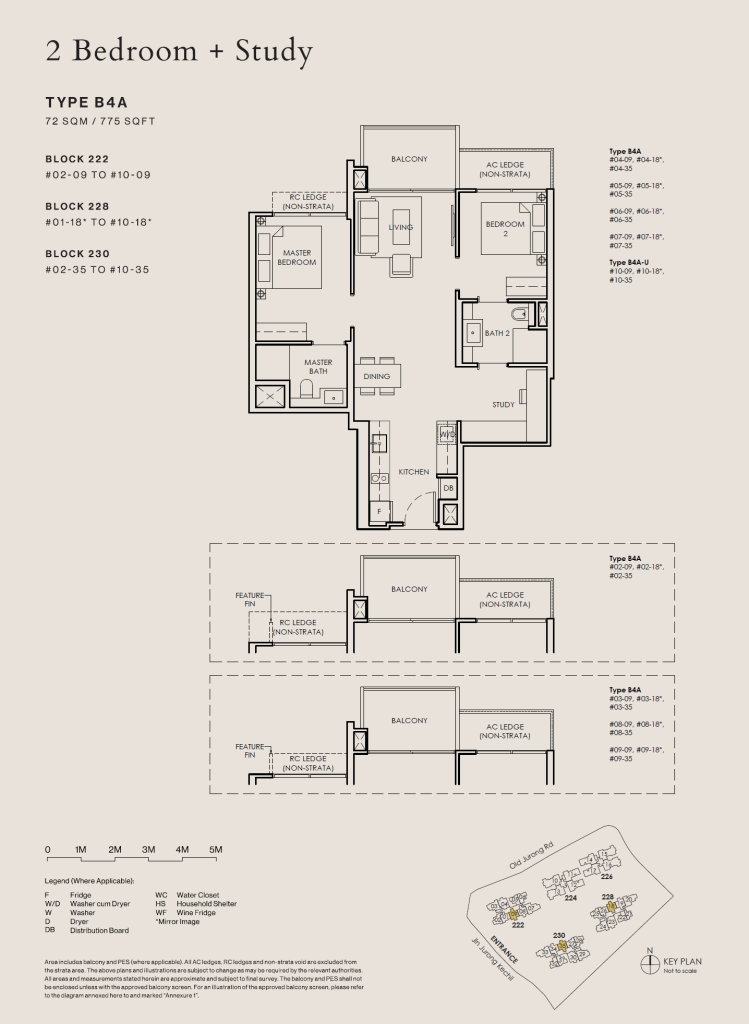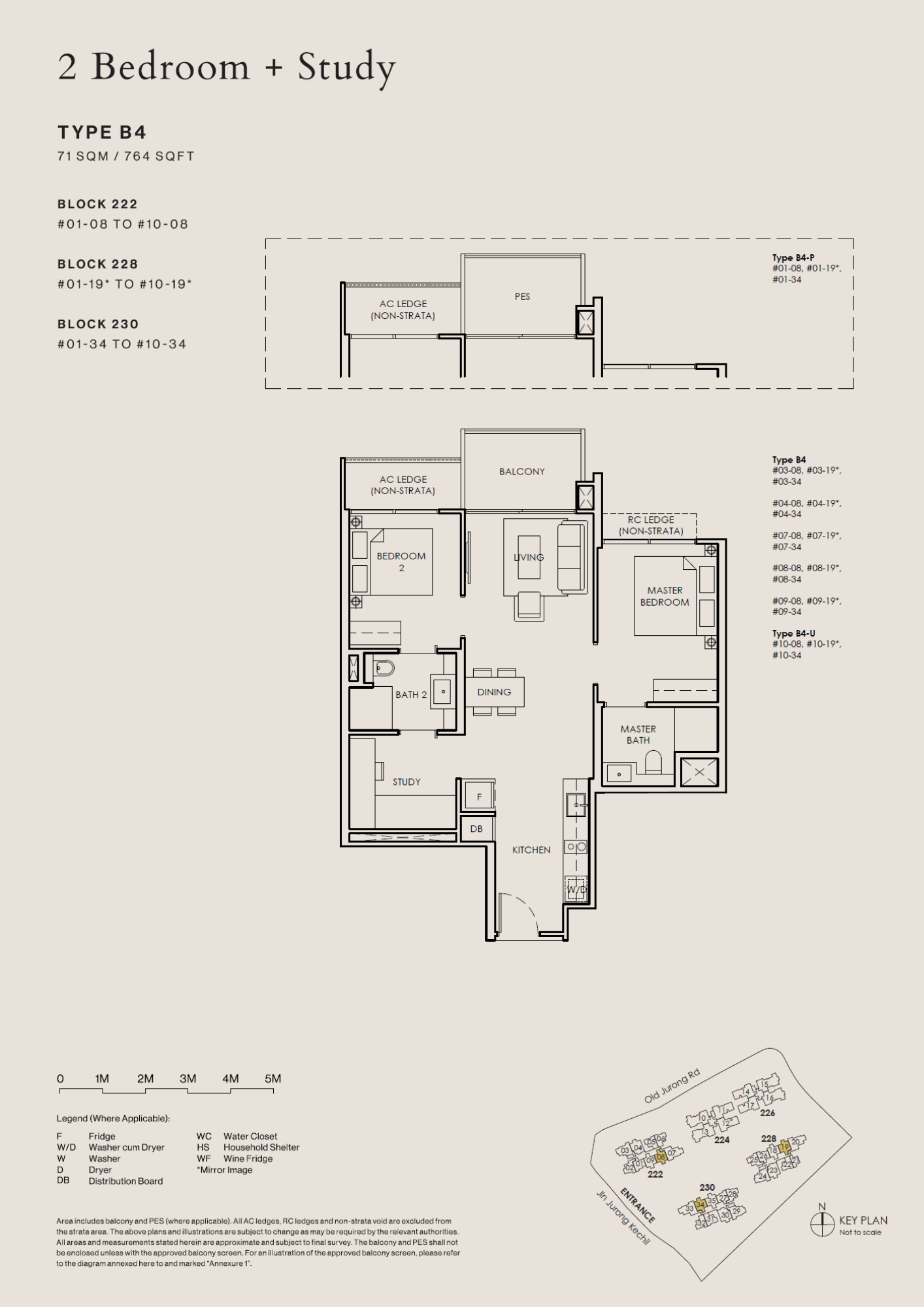 | 2 Bedroom + Study | 57 | 764 - 775 | 16.43% | B4 | $450 |