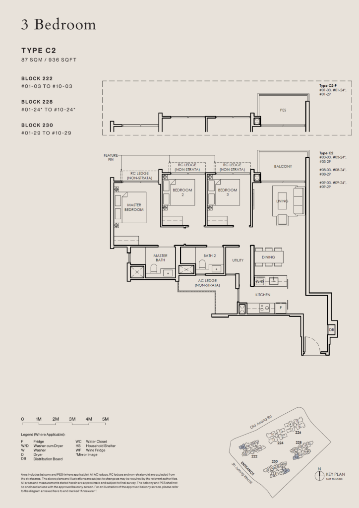 | 3 Bedroom | 90 | 872 - 1109 | 25.94% | C1, C2, C3 | $450 |