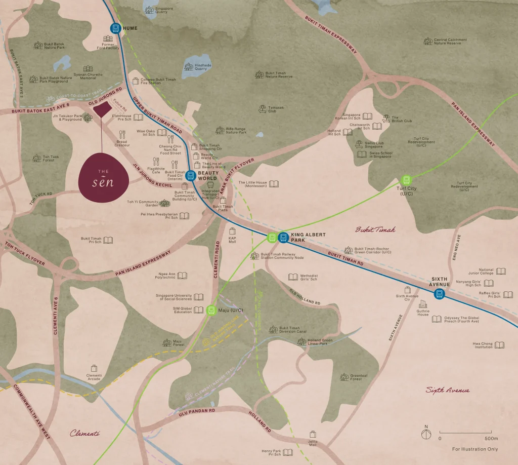 The Sen is a solid long-term investment, especially for buyers who value stability over short-term speculation. Upper Bukit Timah has consistently shown healthy tenant demand, supported by nearby nature parks, strong schools, and easy Downtown Line access via Hume MRT. While the area does not have a large pool of BTO upgraders — which means units may move more slowly in the resale market — this also keeps supply tight and competition lower. Over time, the combination of a stable tenant base, upcoming Beauty World transformation, and limited new launches in D21 provides good resilience and steady value appreciation for long-term holders.