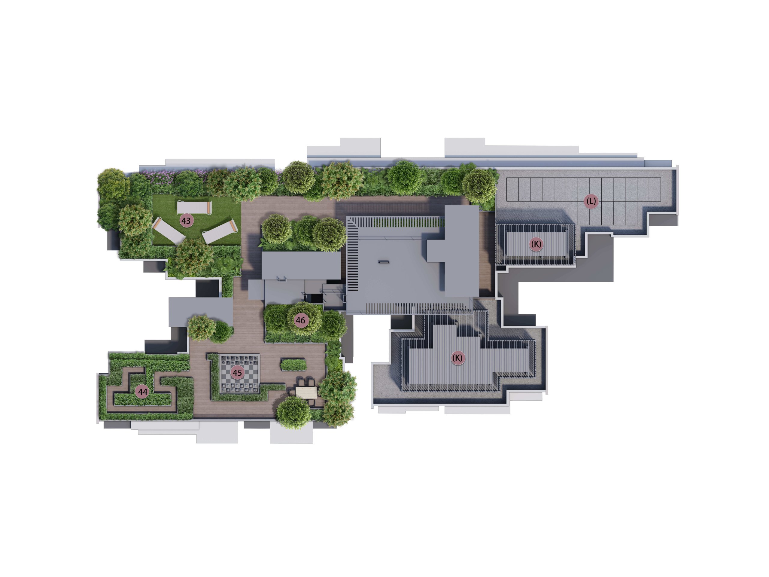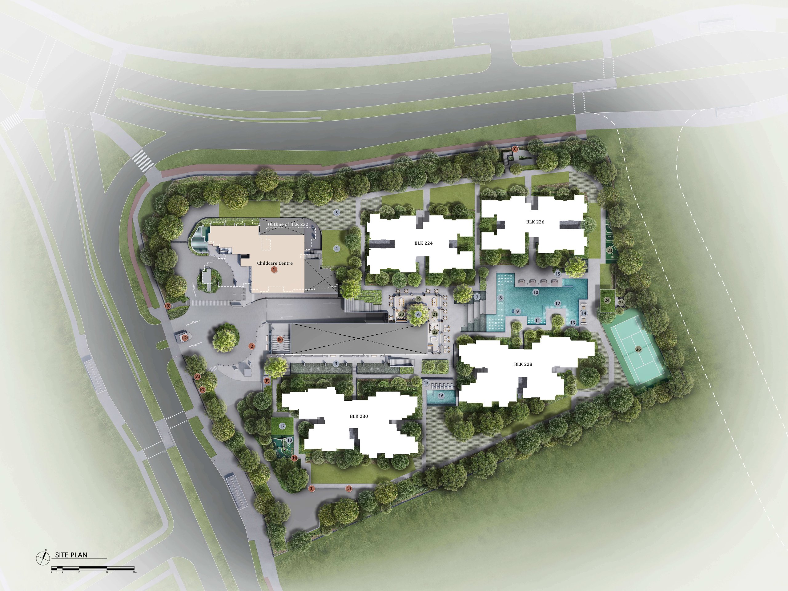 Childcare Centre, Drop Off Foyer, Side Gate 1, Side Gate 2, Side Gate 3, Guardhouse, Bicycle Parking and Repair Station, Management Office, Bulk Meter, Genset, Bin Centre, Substation, Serenity Waters, Play Lawn, Tai Chi Lawn, Tree Courtyard, Terracing Water Feature, Bubble Pool, Aqua Gym, Family Pool, Spa Bed, Spa Seat, Hydro Pool, Family Lounge, Pool Shower, Children’s Pool, Play Pavilion, Children’s Playground, Clubhouse, Reading Lounge, Gathering Lounge, Relaxation Lounge, Forest Fitness, BBQ Pavilion, Open Deck, Recreational Tennis Court, Water Sculpture, Picnic Lawn, Water Feature, 50m Lap Pool, Main Pool Deck, Pool Shower, Serenity Lounge, Gym, Hot & Cold Bath, Toilet with Steam Room, Accessible Toilet, Pilates Pavilion, Meditation Deck, Yoga Lawn, Floral Garden, Sensory Garden, Hammock Alcove, Maze Garden, Chess Garden, Community Garden, Sky Bar Pavilion, Sky Lounge, Hangout Lounge, Sky Deck, Water Tank, Solar Panel