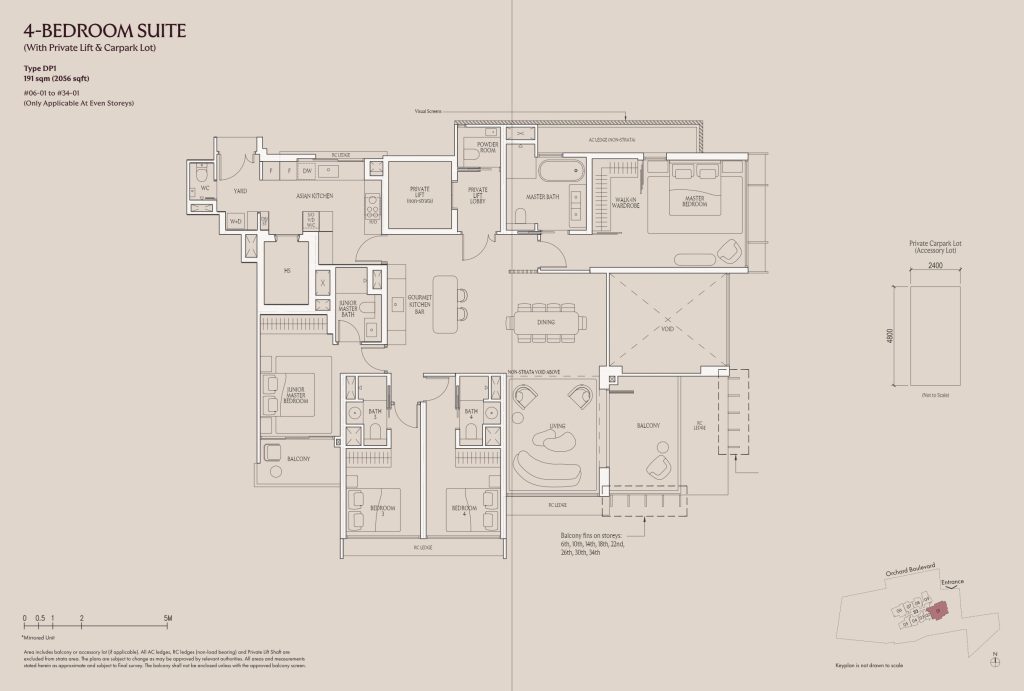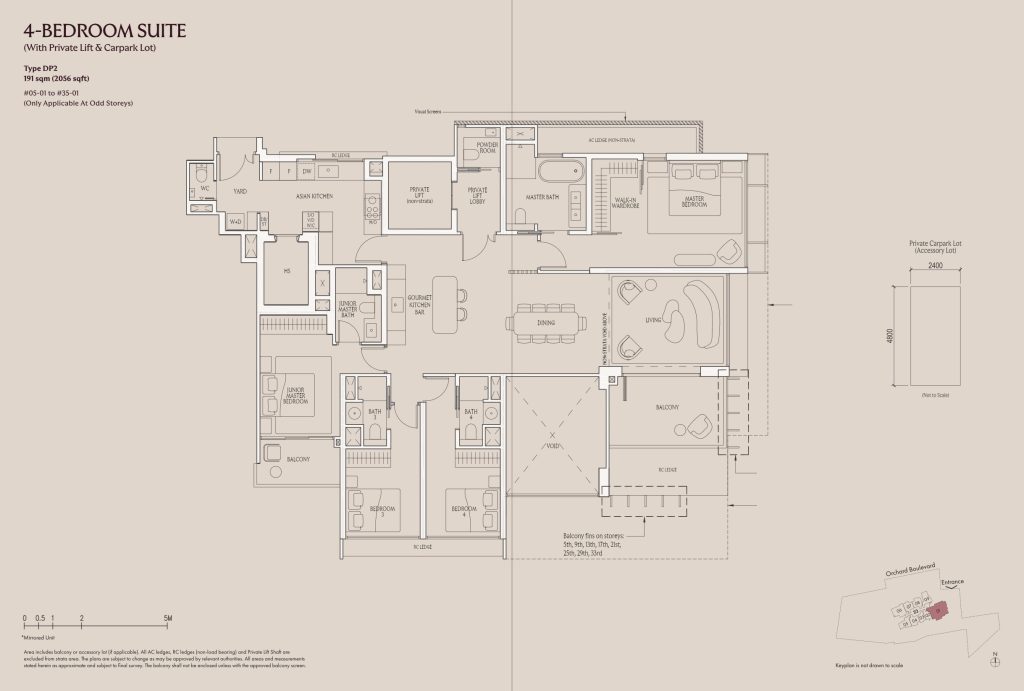 | 4 Bedroom Suite (with Private Lift) | 31 | 2056 | 10.30% | DP1,DP2 | $680 |