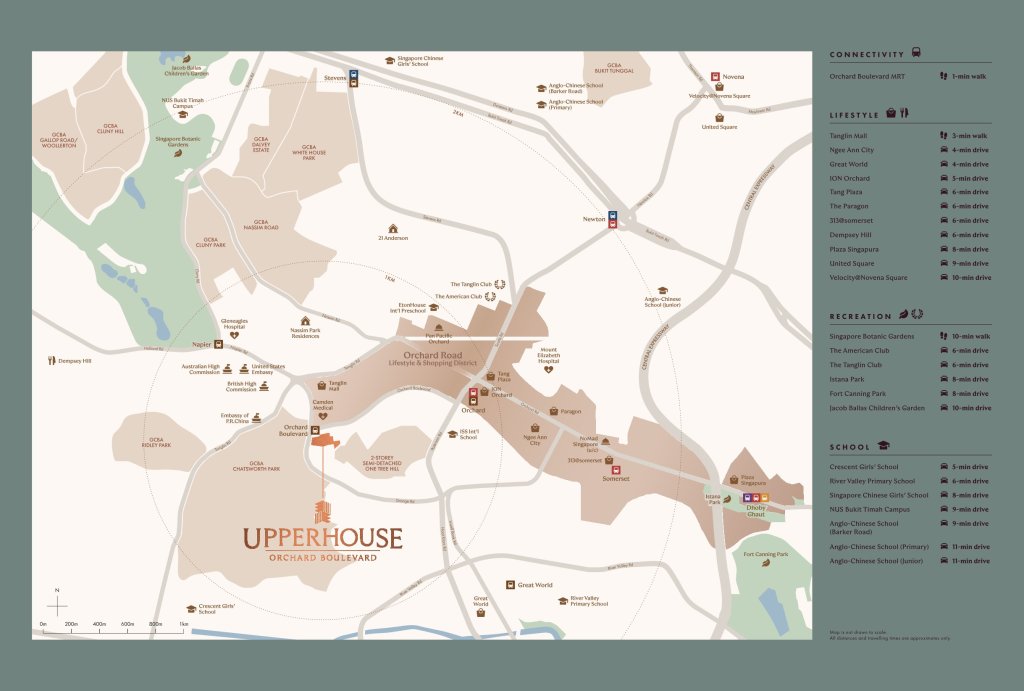 Upperhouse sits in the ultra-prestigious Orchard–Napier belt—home to embassies, luxury hotels, and some of Singapore’s highest-value residences. With Orchard Boulevard MRT (TE13) right at the doorstep, residents enjoy direct Thomson-East Coast Line connectivity, placing them minutes from Marina Bay, Great World, Shenton Way, and Woodlands. This rare combination of prestige and convenience makes Upperhouse an extremely desirable CCR residence.