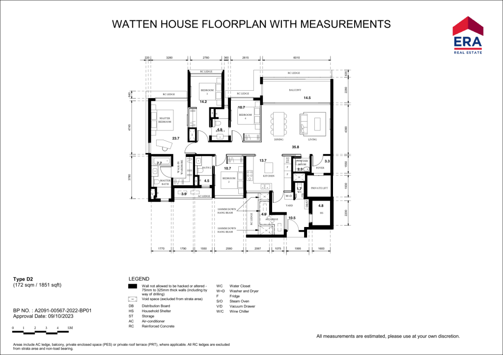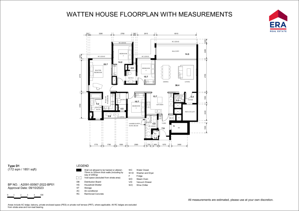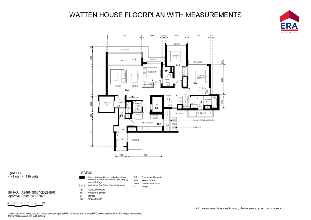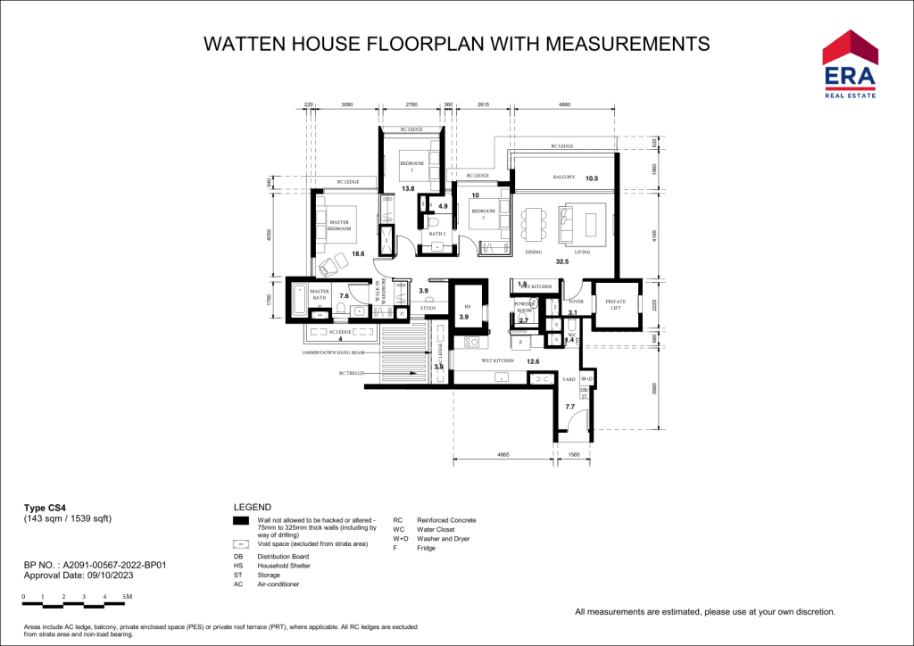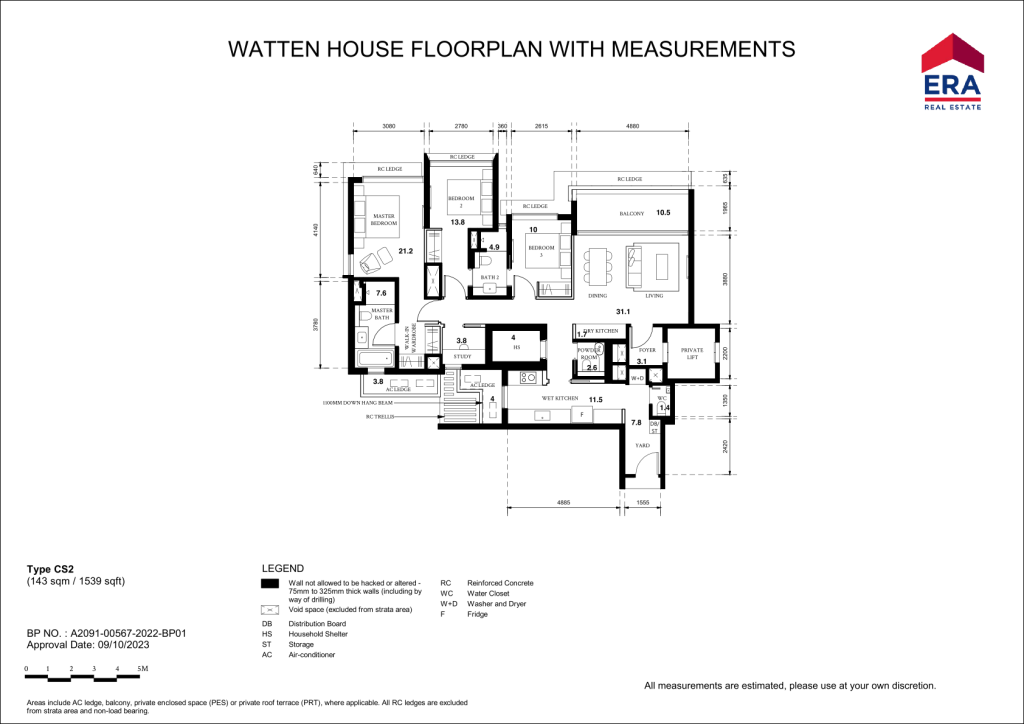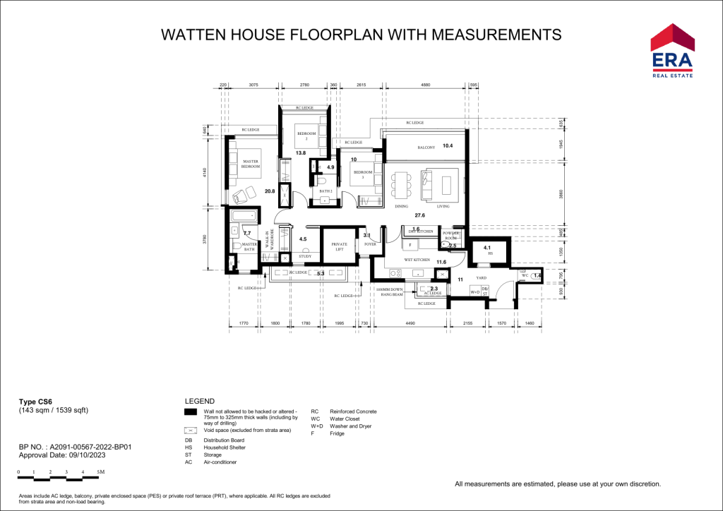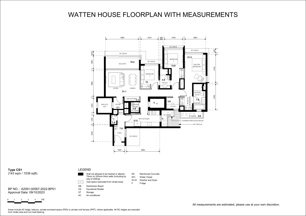 There are 13 different unit Types in Watten House. 3 Bedrooms (C1 990sqft & C2 1,163sqft), 3 Bedrom + Study (CS1 to CS6 1,539sqft), 4 Bedrooms (D1 & D2 1,851 sqft), 5 Bedrooms (E1 2368 sqft), 3 Penthouses ranging from 3,412sqft to 4,080sqft)
