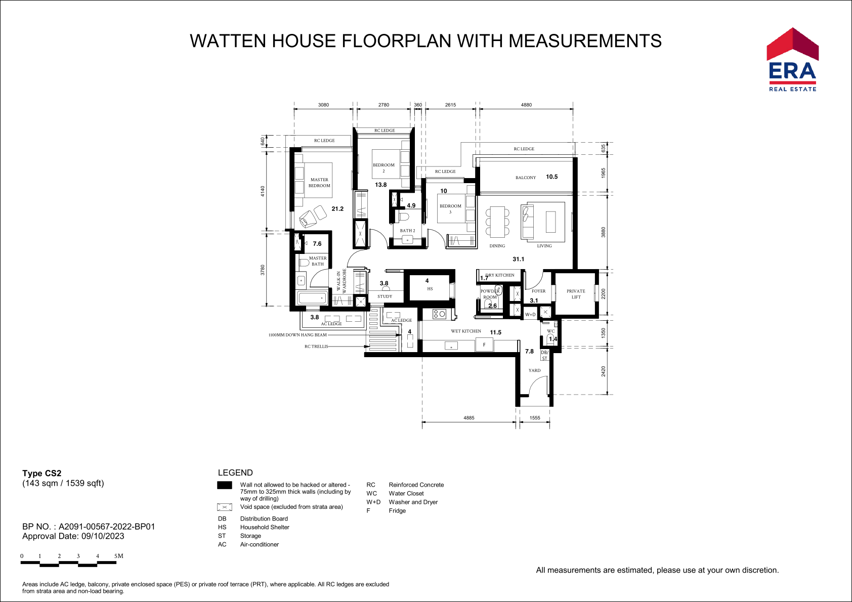| 3 Bedroom + Study | 60 | 1539 | 33.33% | CS1 - CS6 | $910 |