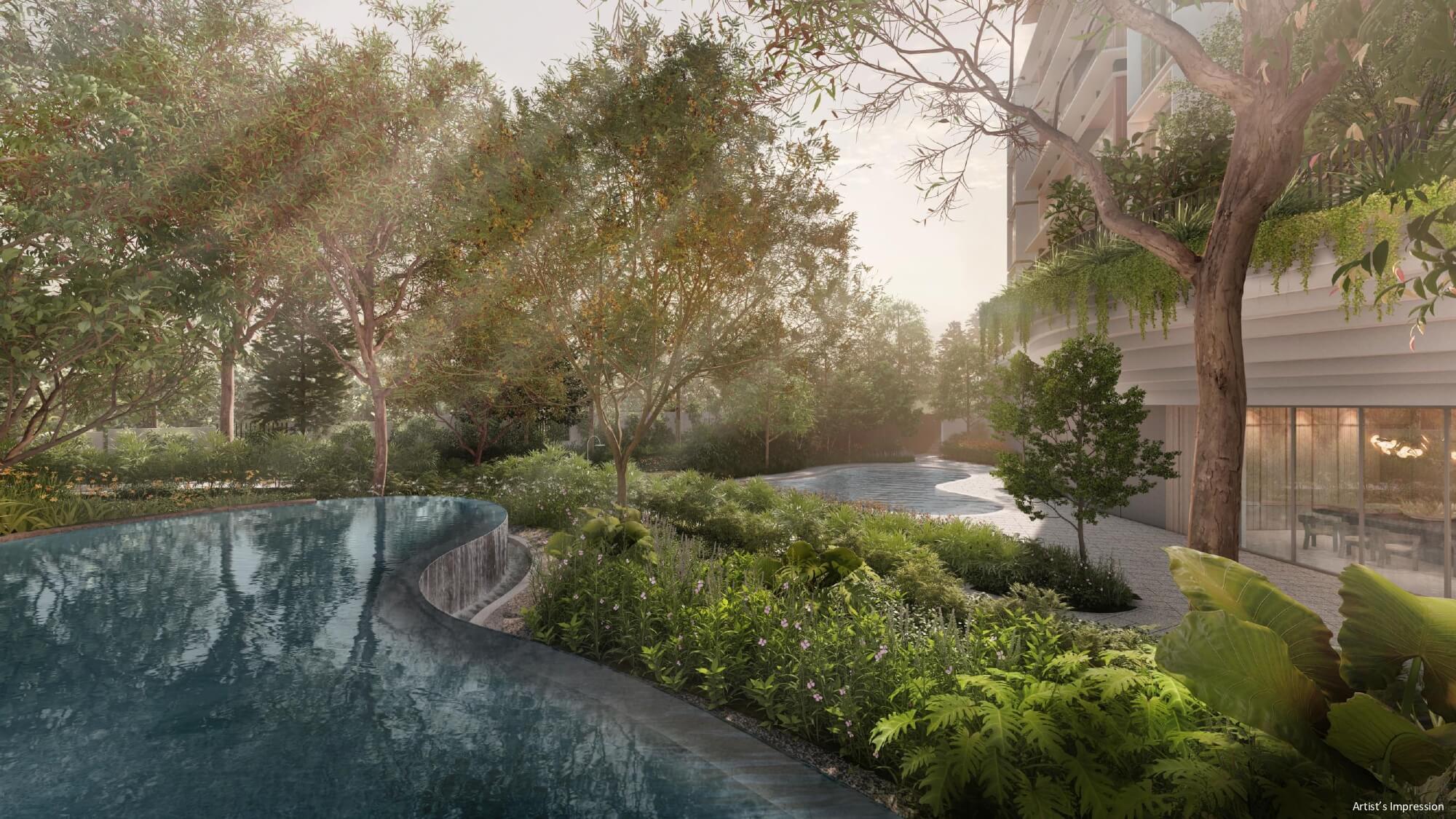 Positioned on elevated freehold land within the prime Watten Estate, Watten House blends modern architectural elegance with timeless resort-style landscaping. The design emphasises space, privacy, and nature — a hallmark of high-end Bukit Timah living. With a curated mix of 3-bedroom to 5-bedroom homes and penthouses, the development caters to multi-generational families and affluent homeowners who value both comfort and exclusivity. Its comprehensive suite of facilities, from a 50m lap pool to aqua gym, reading pavilion, and lush garden courtyards, creates a tranquil sanctuary minutes from everyday conveniences.